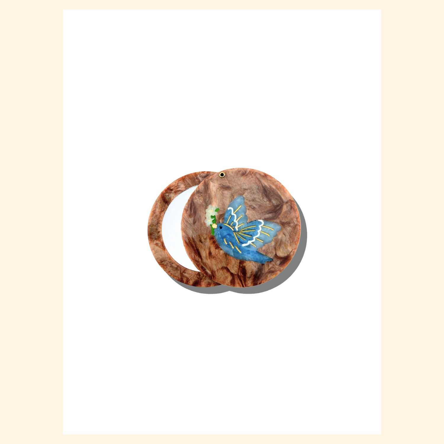Miroir de poche peint à la main avec oiseau bleu