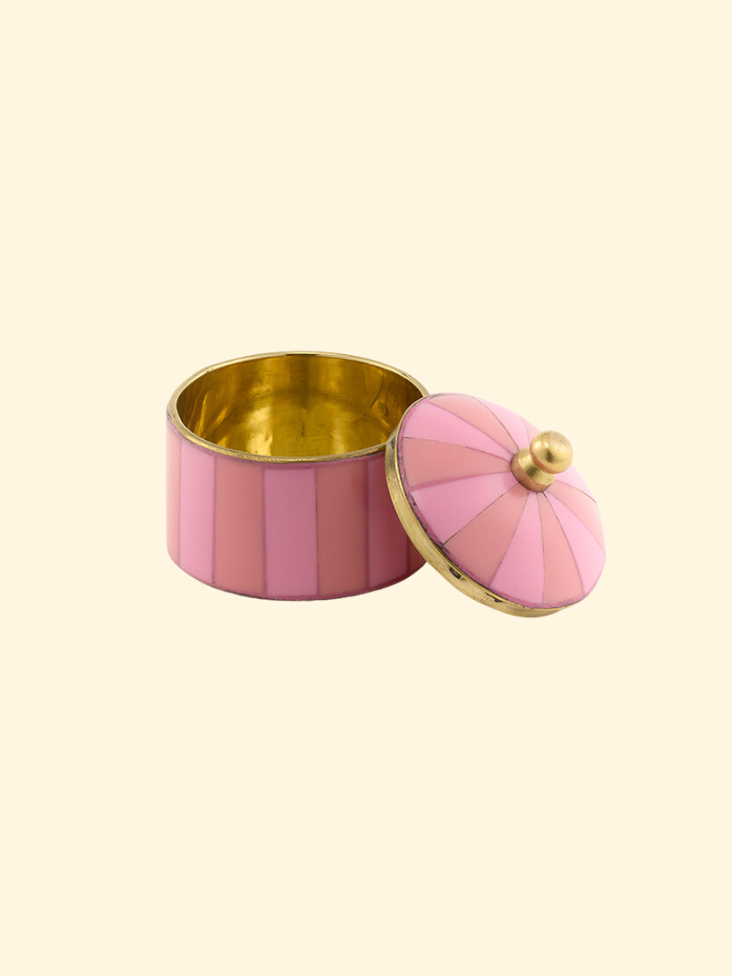 Rangez vos bijoux préférés dans cette ravissante boîte à bijoux rose. Fabriquée à la main avec amour en Inde, cette pièce étonnante est confectionnée à partir de laiton recyclé et de résine, assurant que chaque achat soutient les artisans locaux et leurs communautés. Ajoutez une touche de rose à votre table de maquillage !