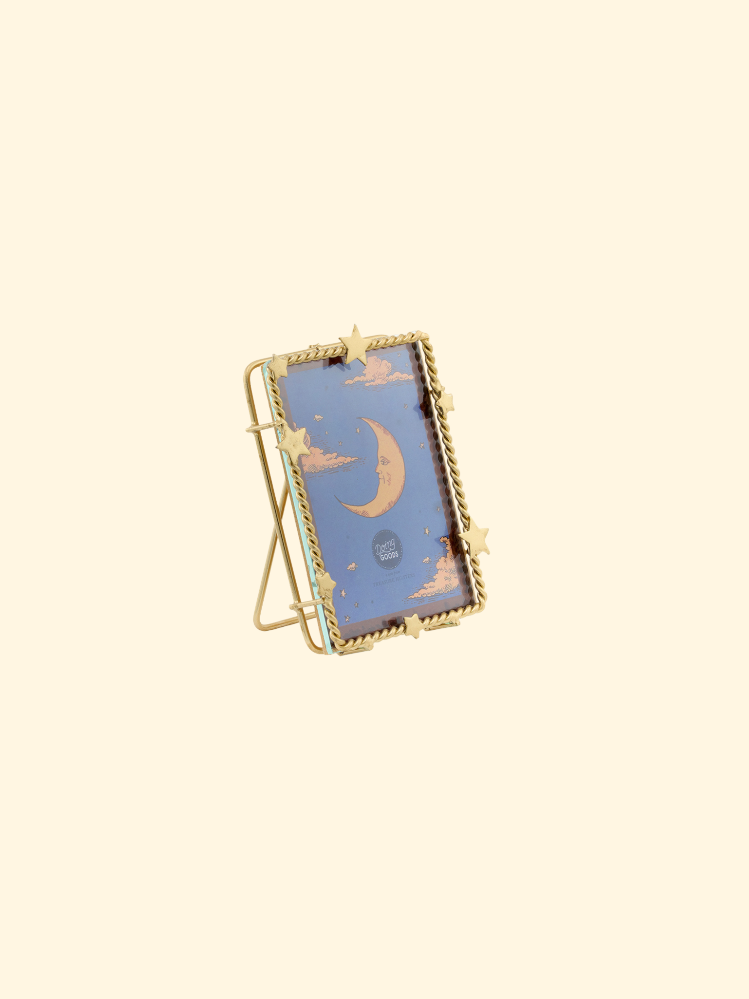 Découvrez le Cadre Étoilé Petit Luna, une belle addition à votre décoration intérieure. Ce cadre unique, fait à 100 % à la main par notre équipe talentueuse en Inde, est fabriqué en laiton recyclé avec une finition dorée brillante. Conçu pour contenir une photo de 10 x 7 cm, ce cadre ajoute un élément ludique et distinctif à vos souvenirs précieux.