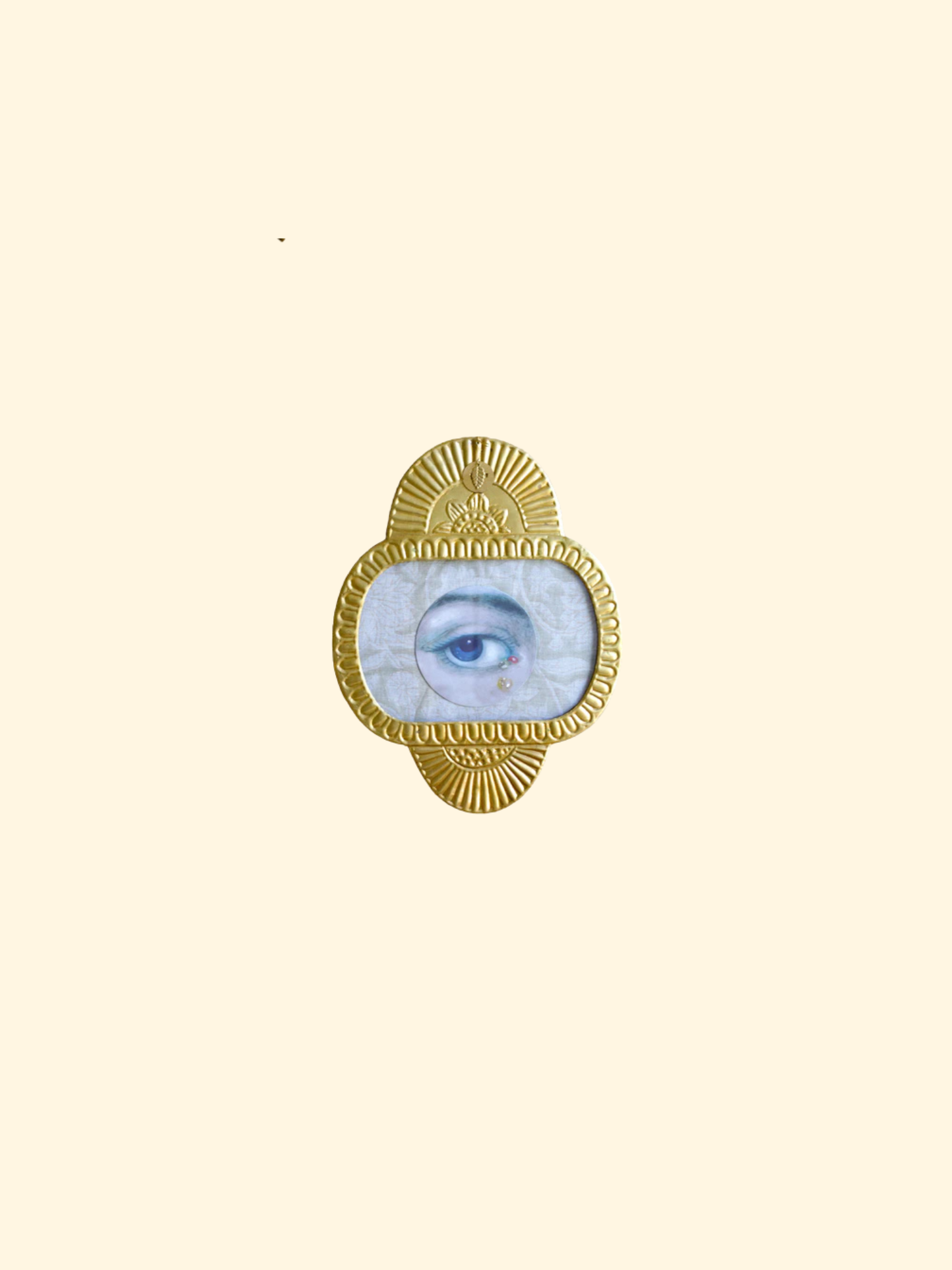 Cadre photo ovale doré à suspendre.