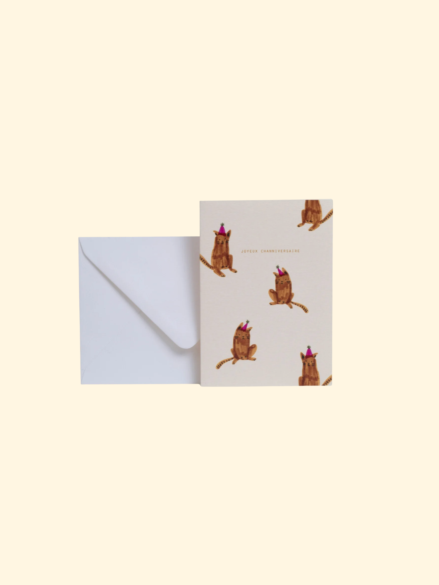 Souhaitez un anniversaire félin avec notre carte Chats Festifs "Joyeux Channiversaire".