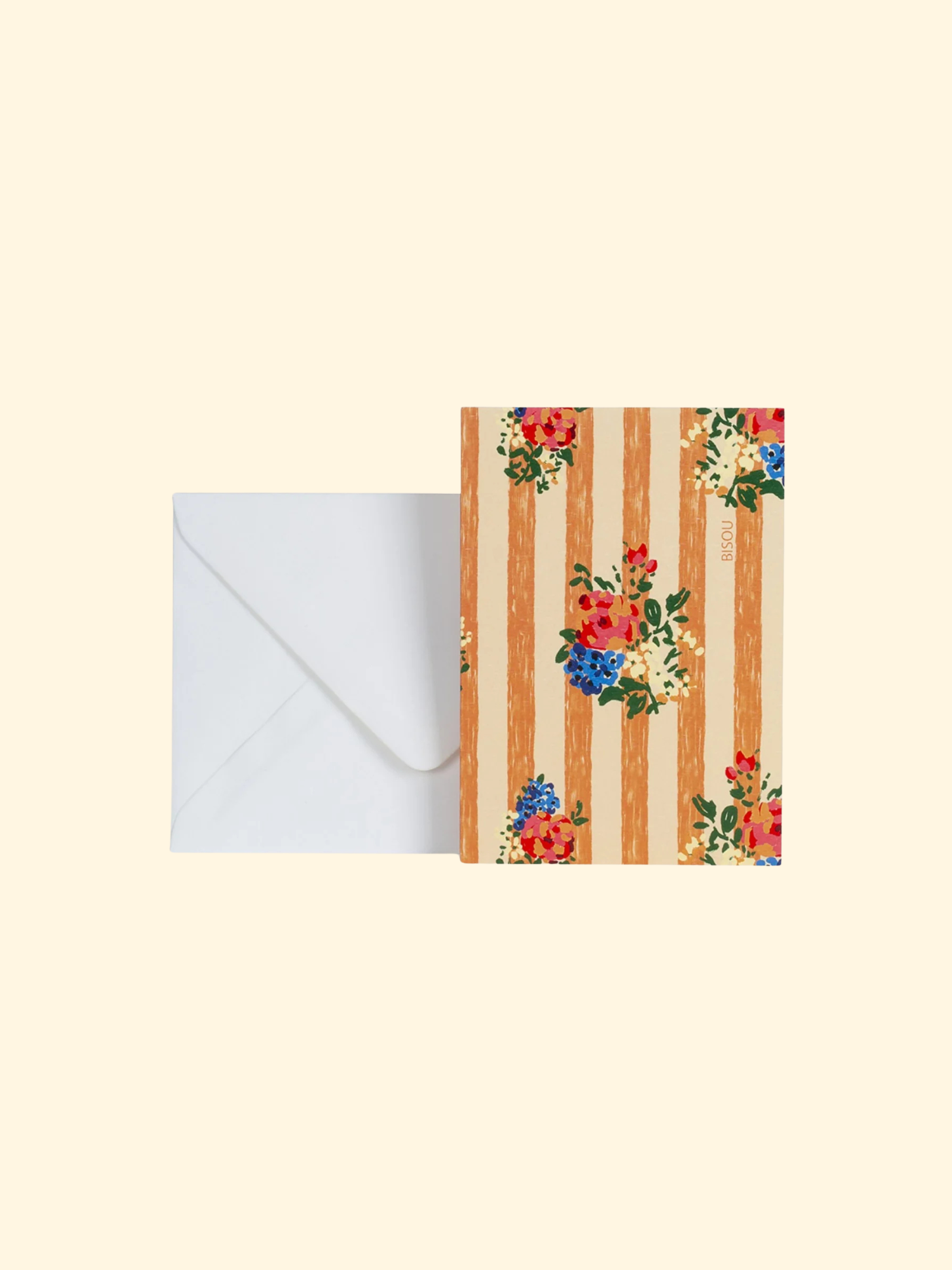 Envoyez des bisous fleuris avec notre carte Nonna ! Des bouquets de fleurs romantiques associés à une rayure verticale couleur pêche, tellement charmante qu'on en rougirait presque !
