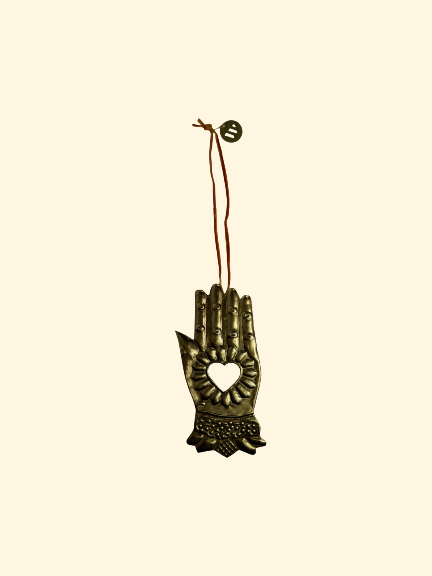 Ravissant ornement en forme de main de Fatma à suspendre où vous le souhaitez pour une touche dorée.