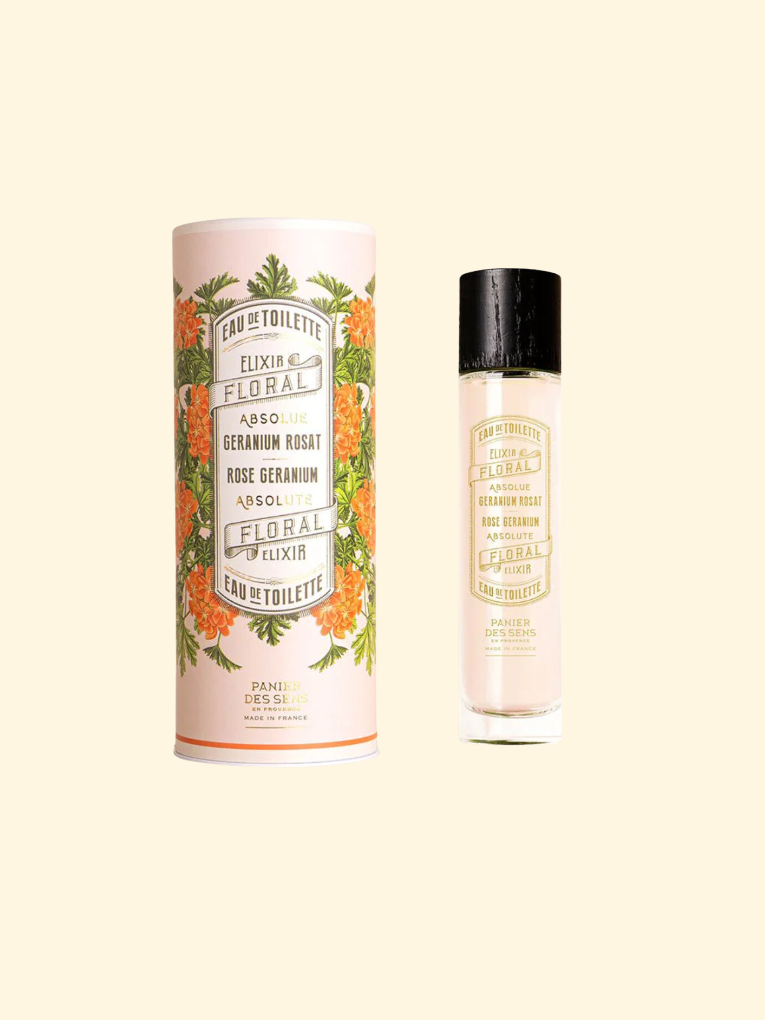 Une eau de toilette au parfum floral à l'absolue de Géranium Rosat : fusant et acidulé.