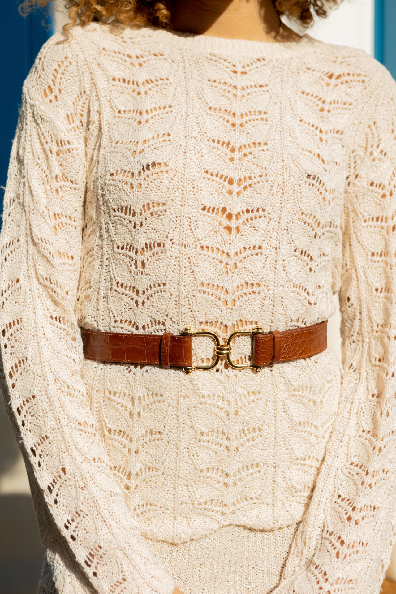 GRANDE CEINTURE OLYMPE CROCO CAMEL