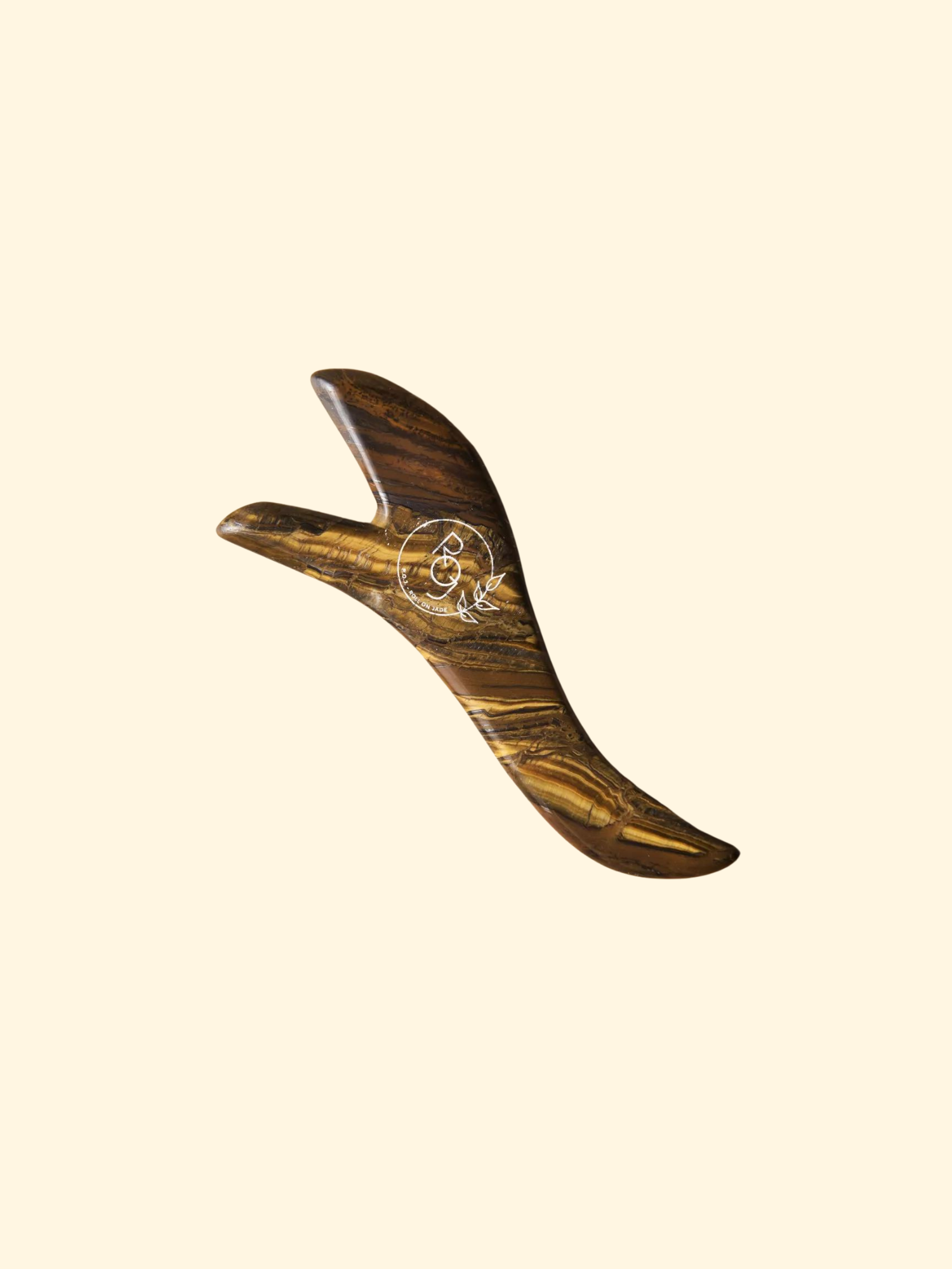 Notre Gua Sha Signature Lift en Oeil de Tigre est un design unique créé par Roll On Jade qui vous permettra de prendre soin efficacement de votre visage, cou et décolleté.