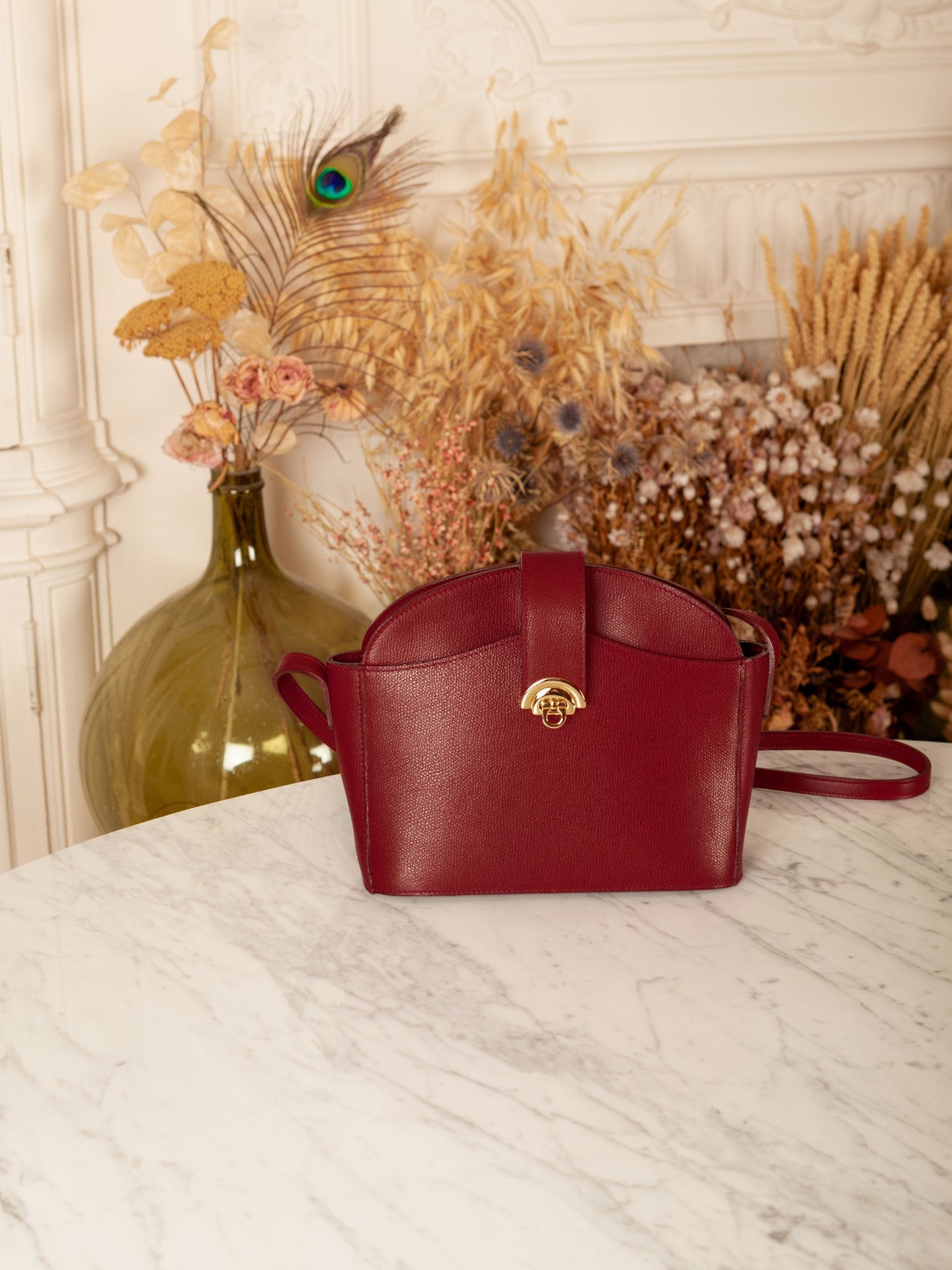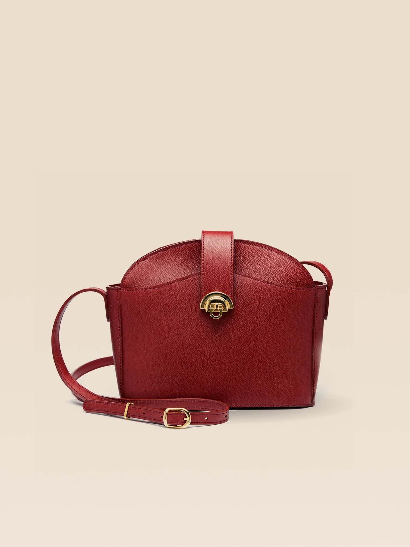 Sac en cuir de veau grainé tanné avec un tannage minéral en France, fermoir arc de cercle doré