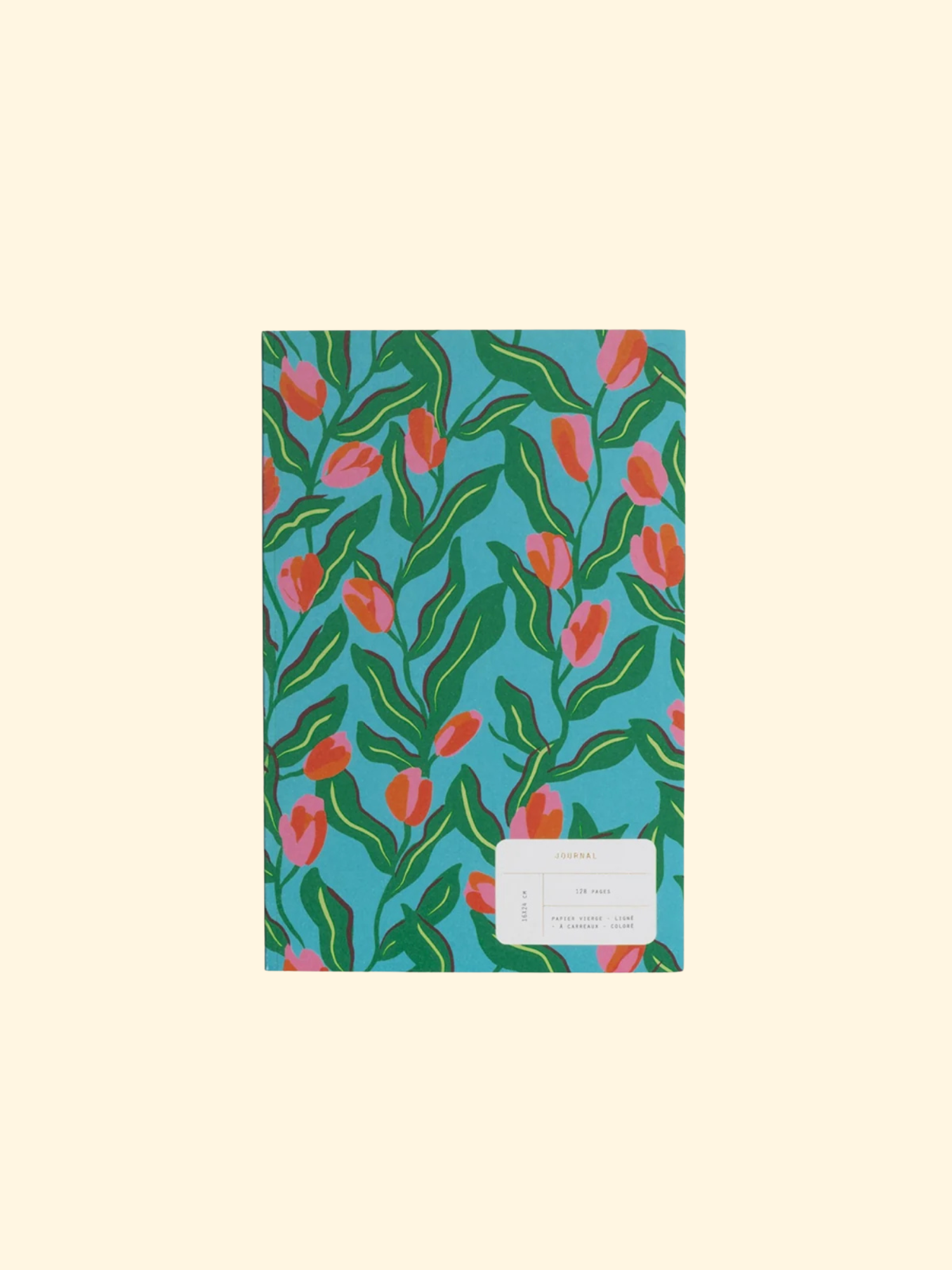 Tulipes monumentales aux couleurs pop - turquoise lumineux, rose bonbon, rouge et orange vitaminés - notre motif Amore mio est délicieusement joyeux. Avec ses 128 pages, sa couverture à rabat et sa dorure à chaud élégante, ce journal vous accompagnera jour après jour.