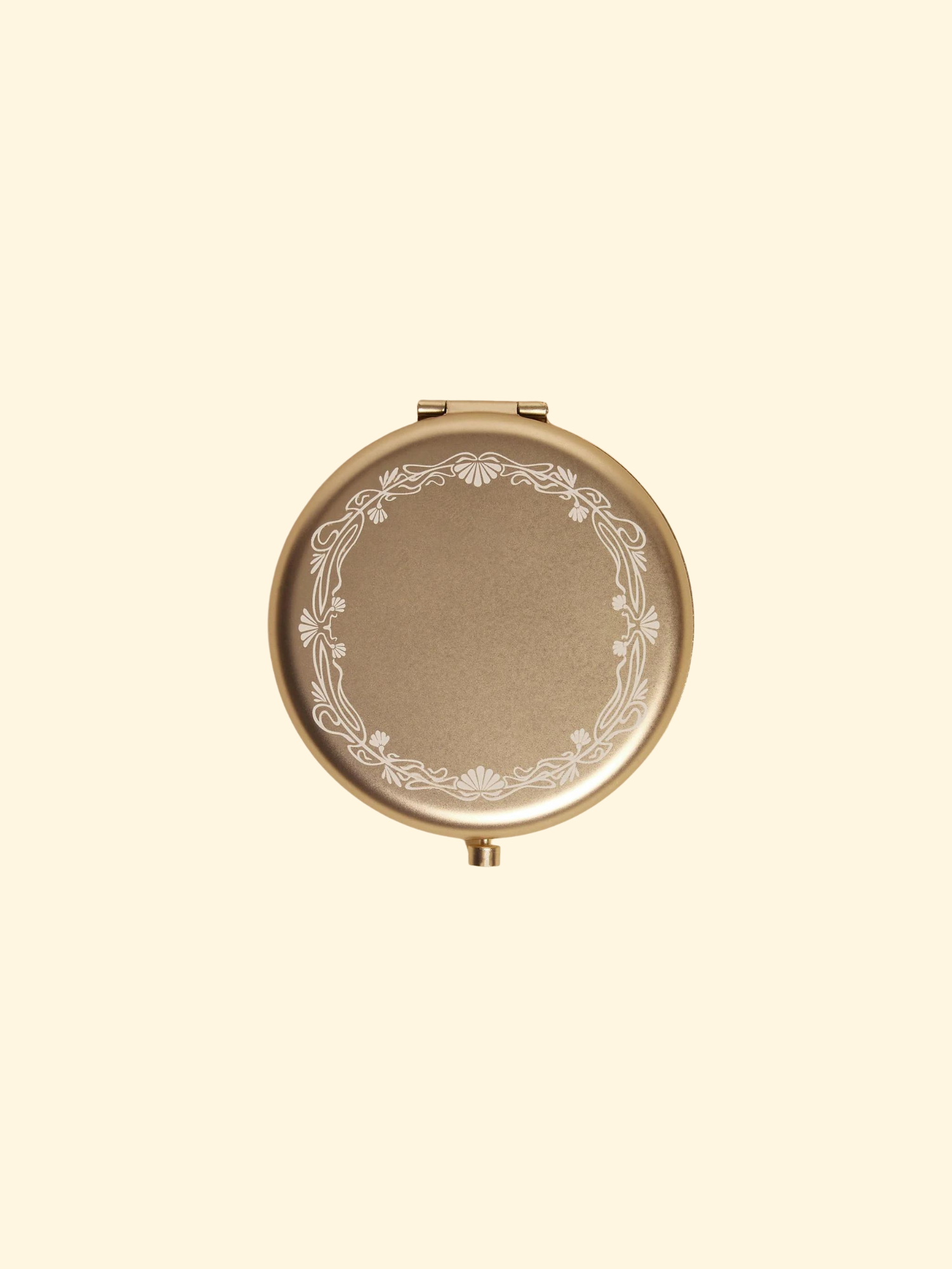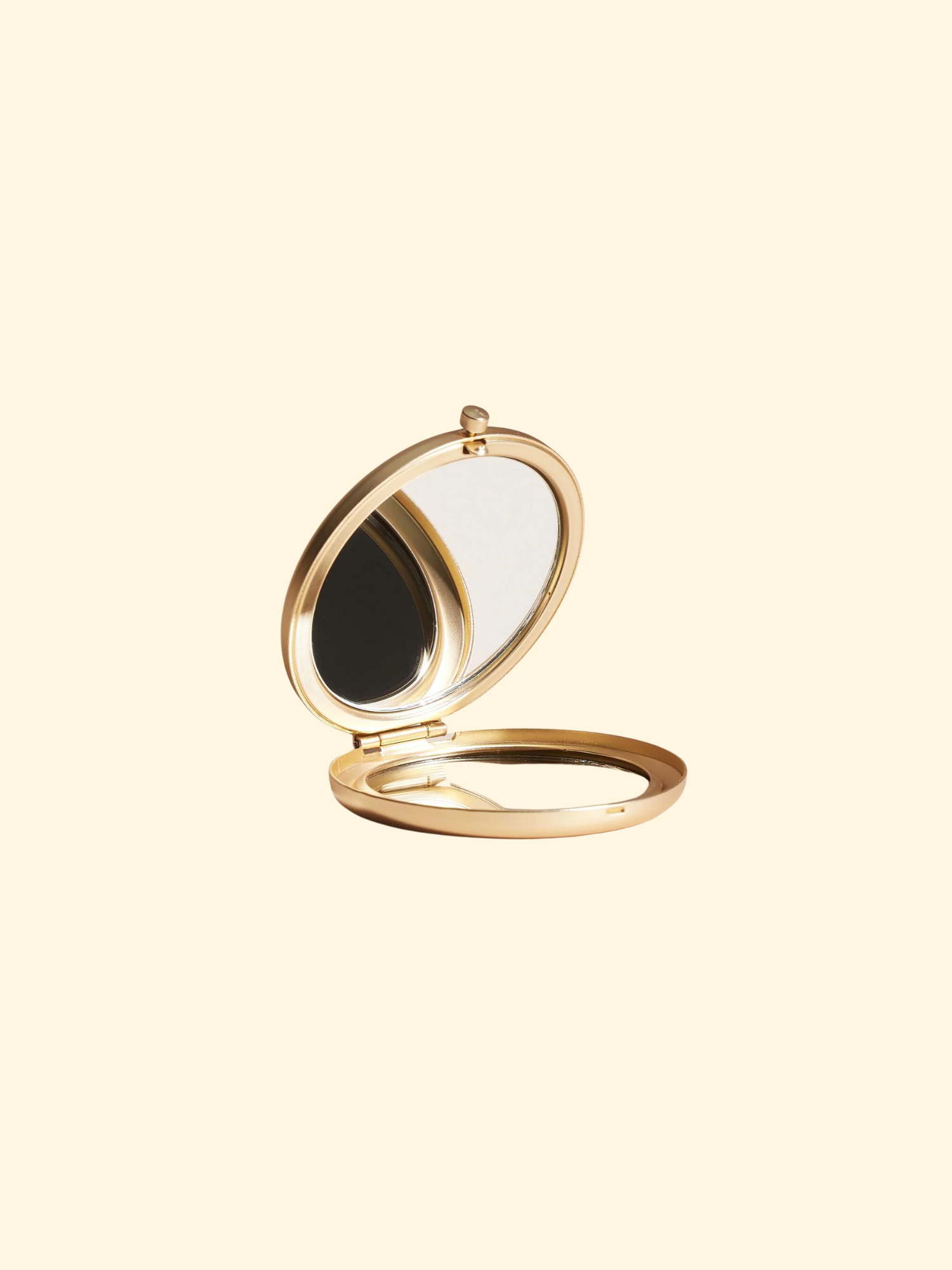 Le Miroir se présente dans un poudrier doré au design vintage.