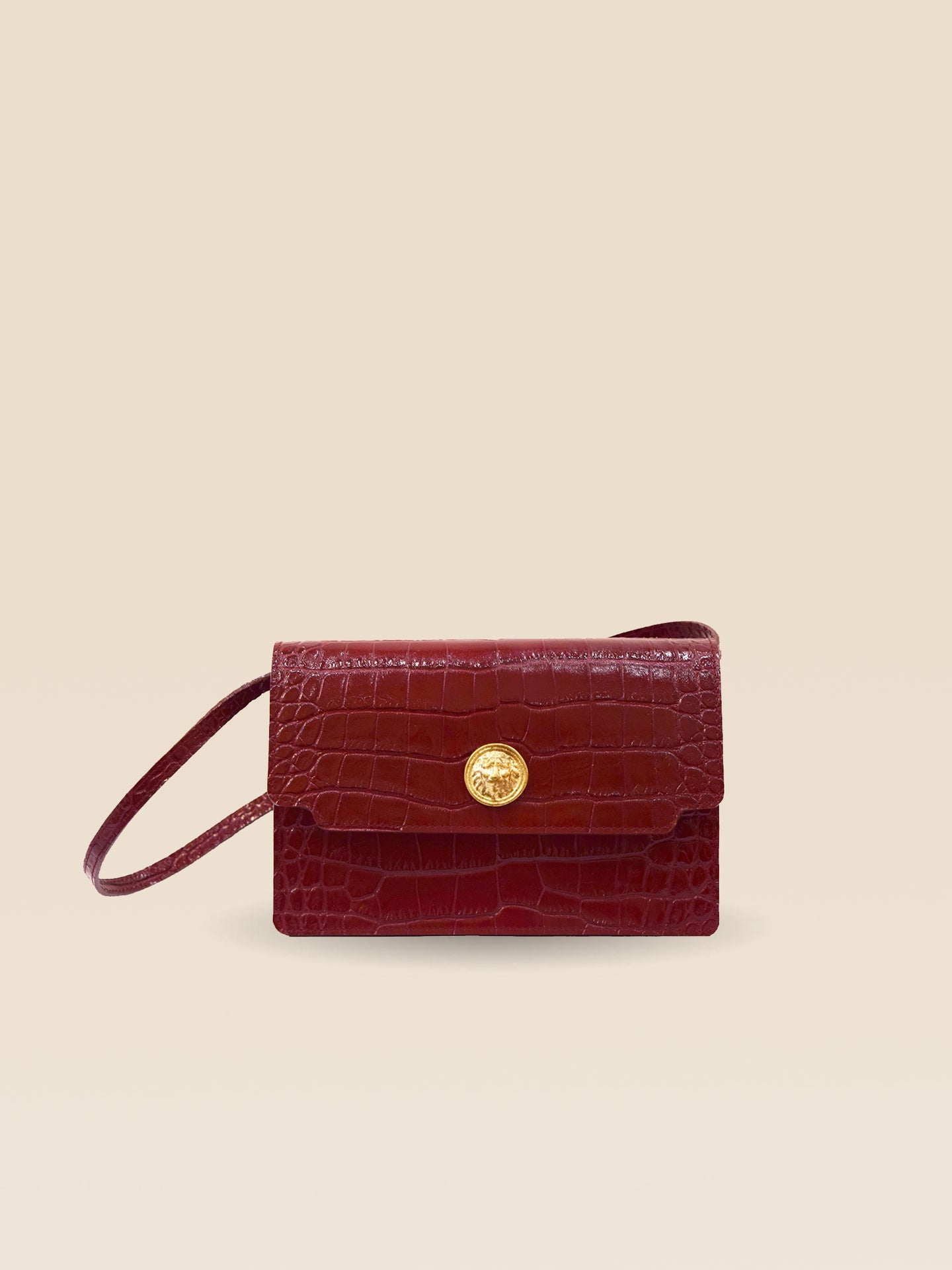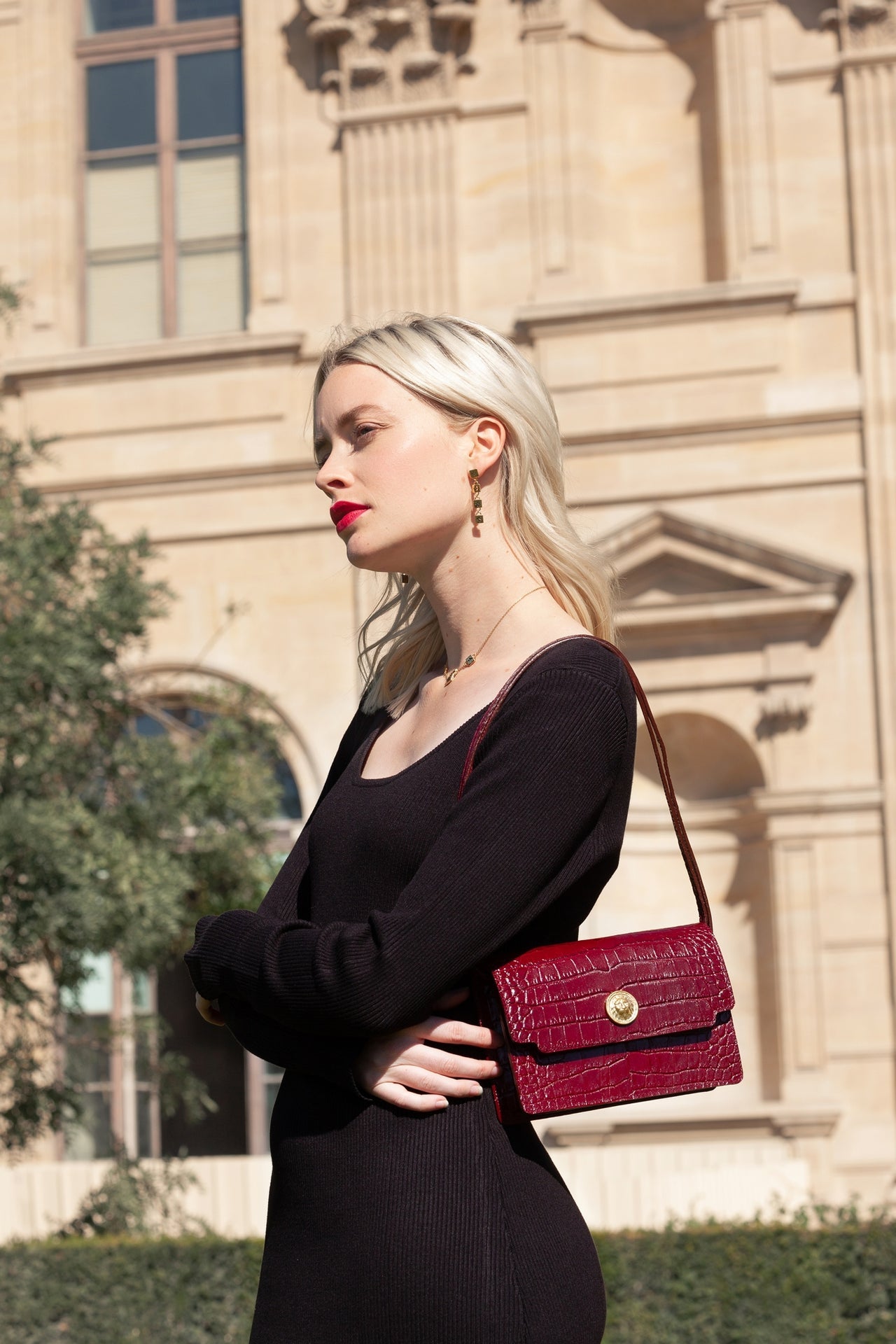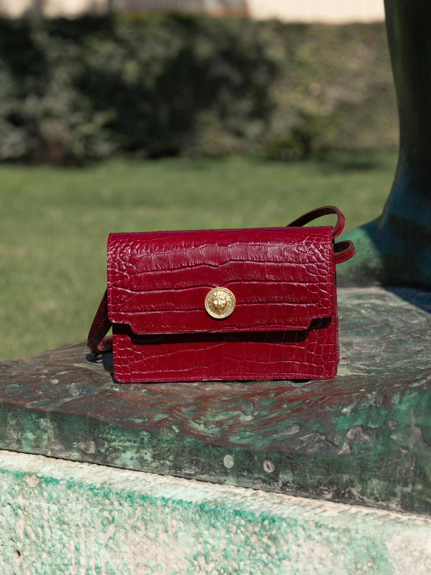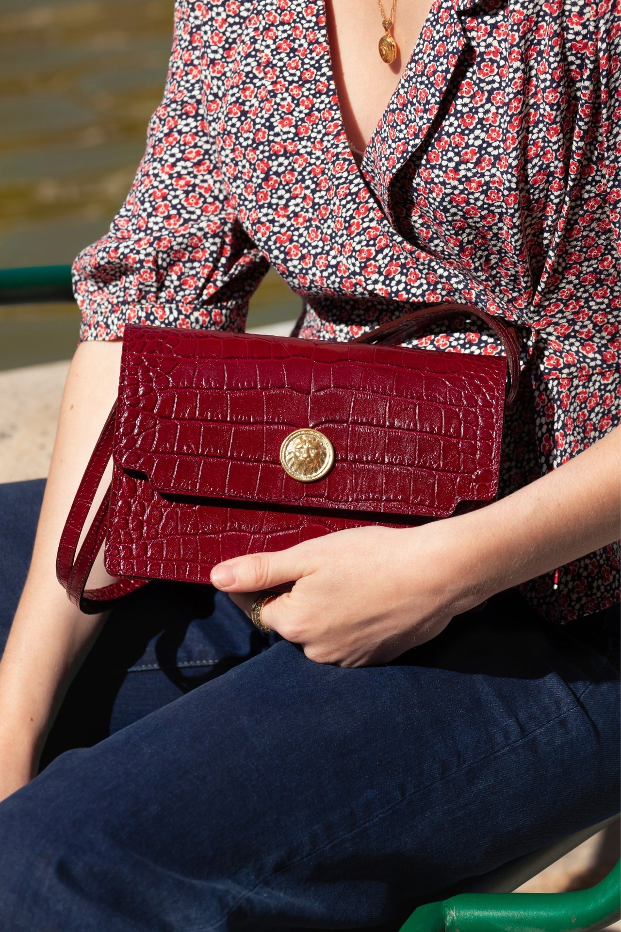 Sac en cuir de vachette embossé croco à tannage minéral et fermoir tête de lion