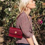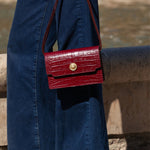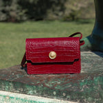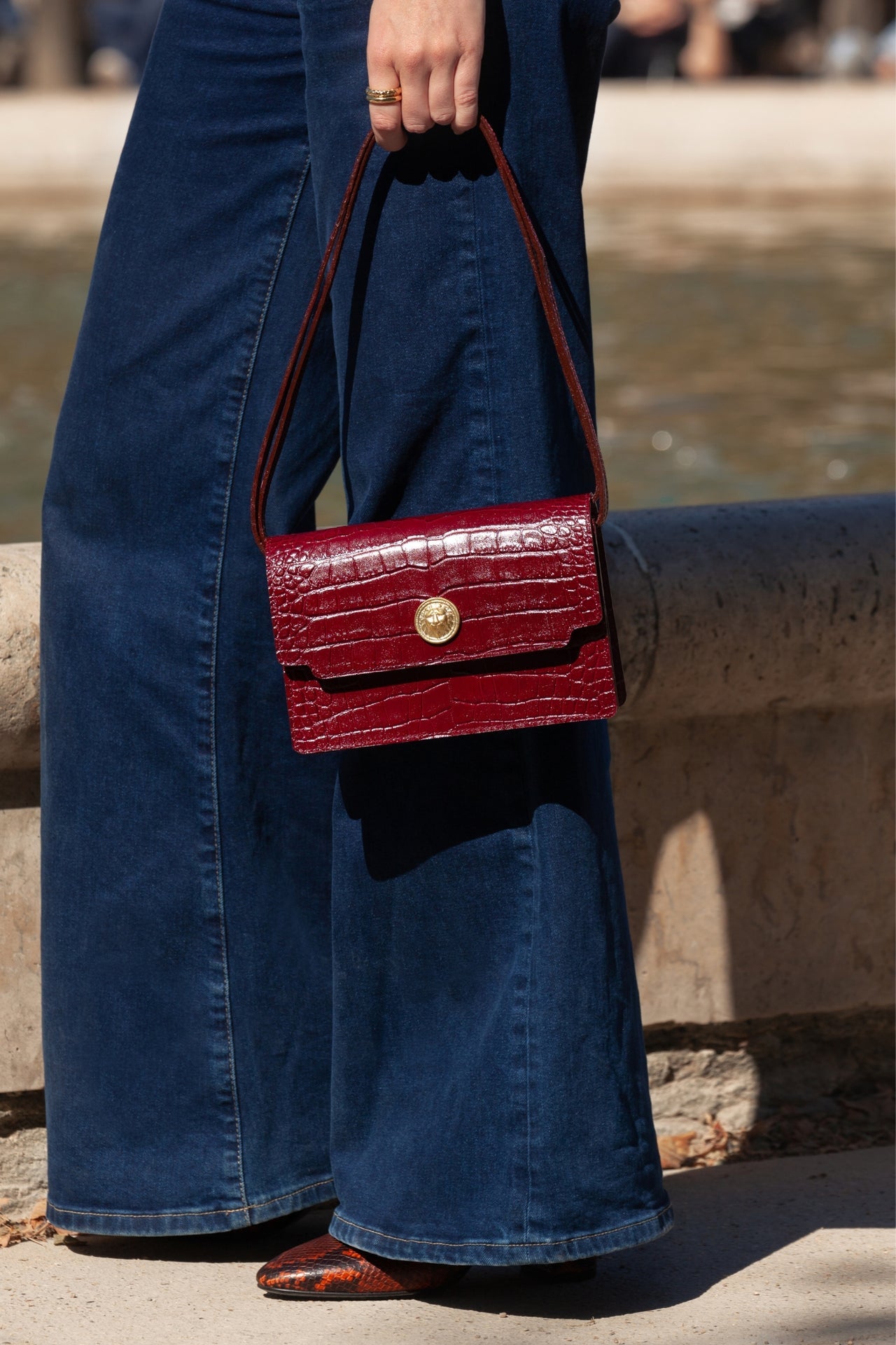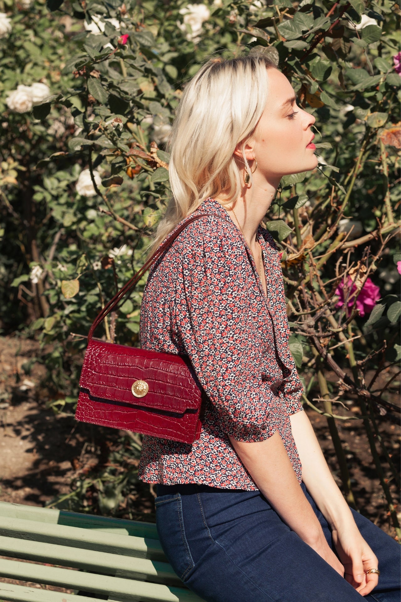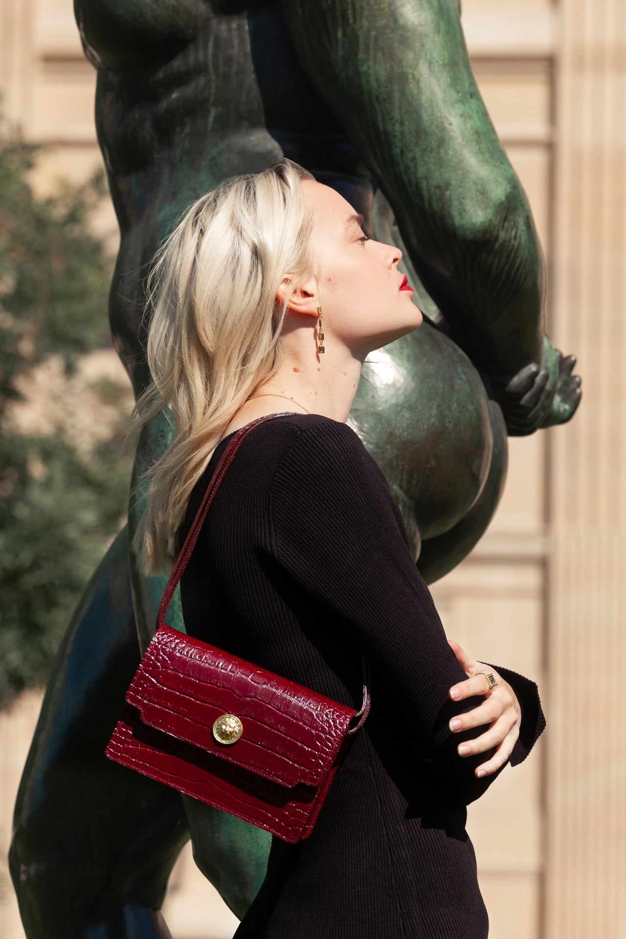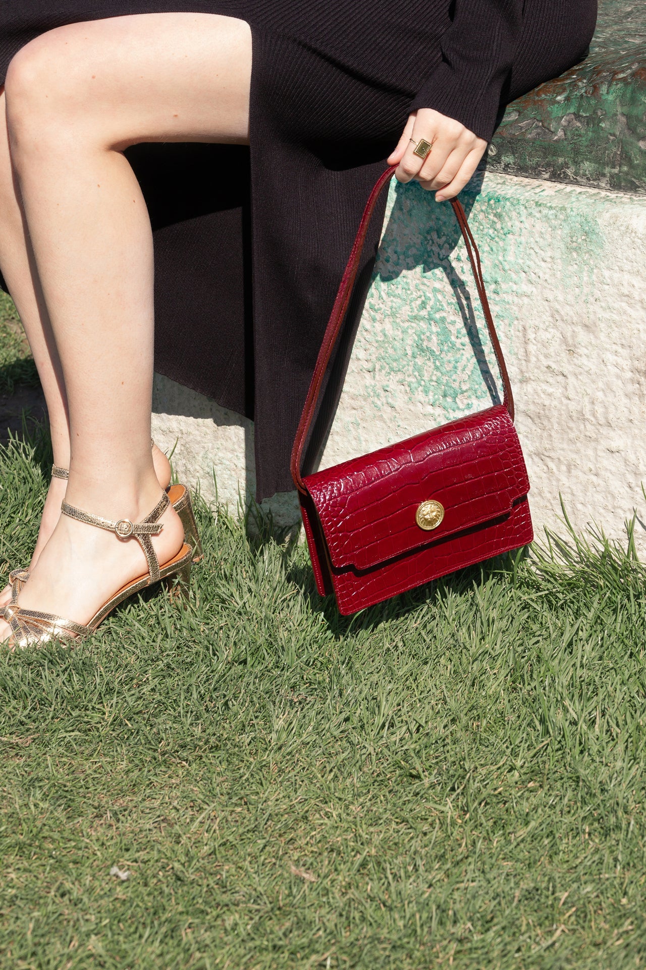 Sac en cuir de vachette embossé croco à tannage minéral et fermoir tête de lion