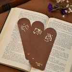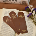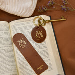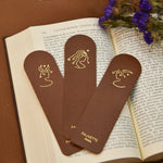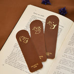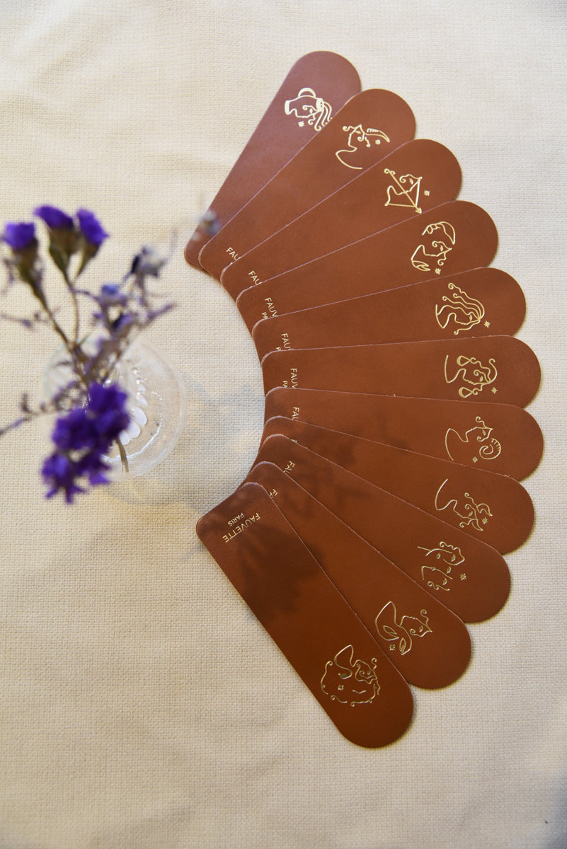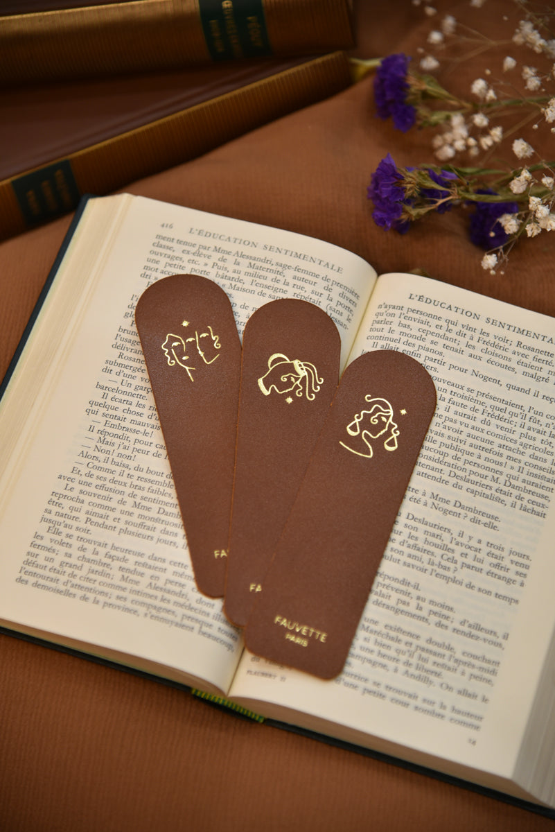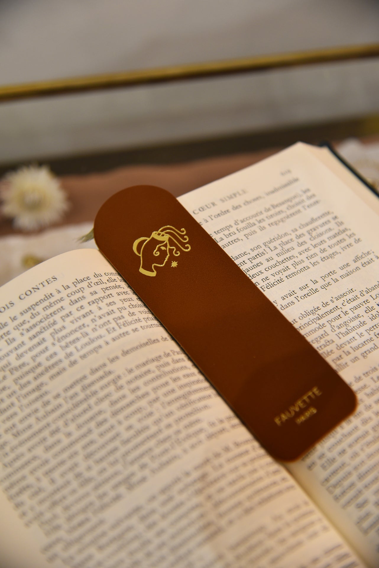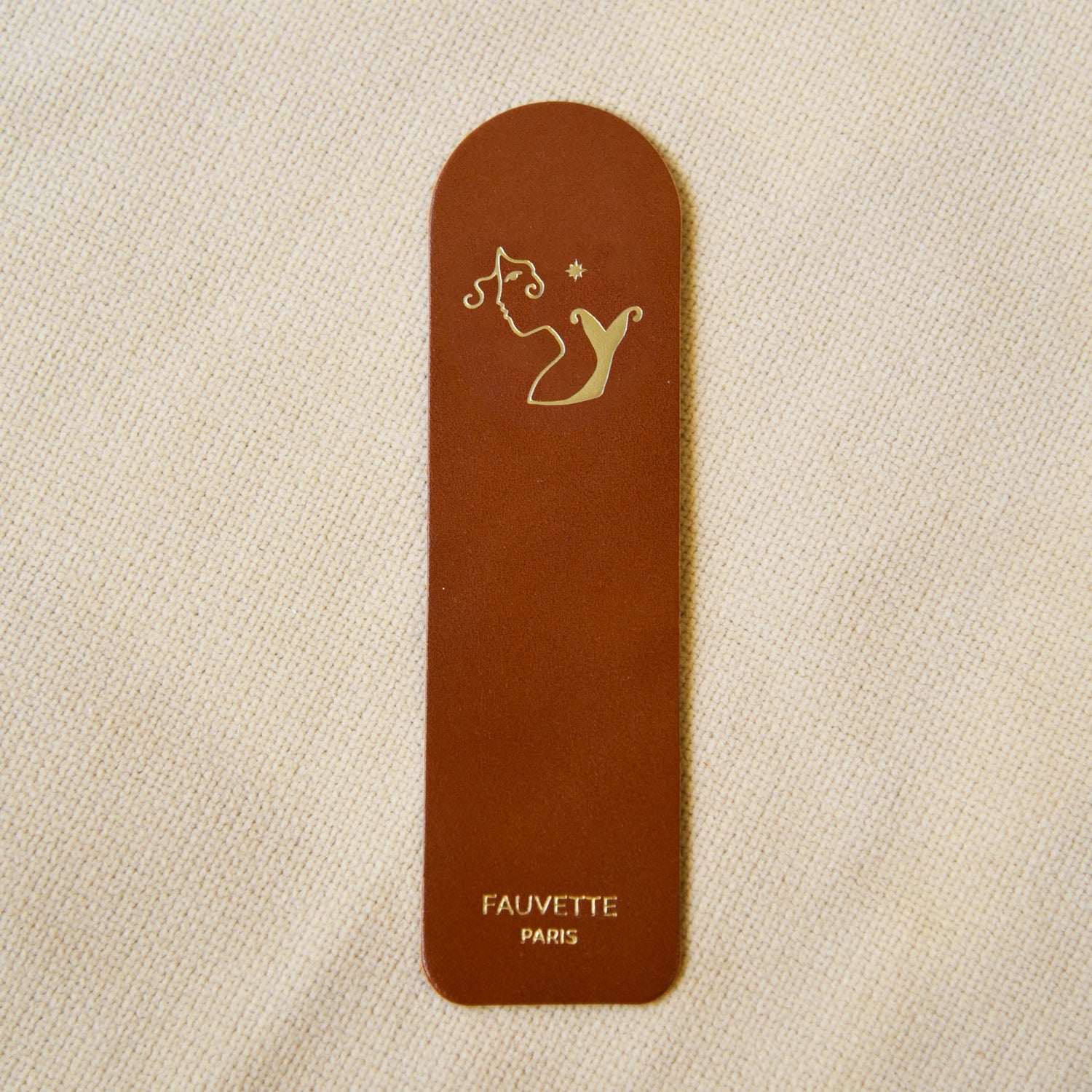 Marque-page en cuir tannage végétal, illustration signe astrologique dorée à chaud dans notre atelier parisien