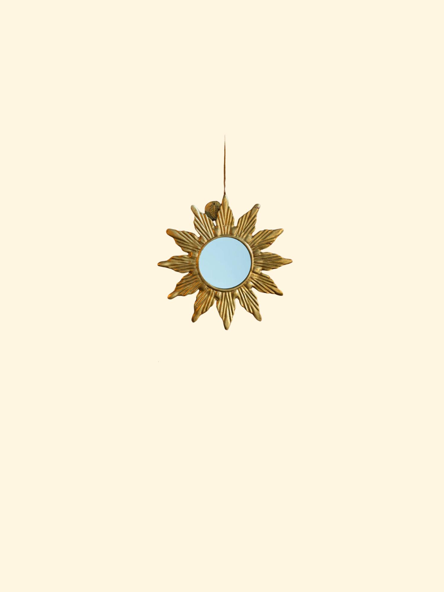 Miroir étoilé martelé à la main avec bordures dorées lumineuses.