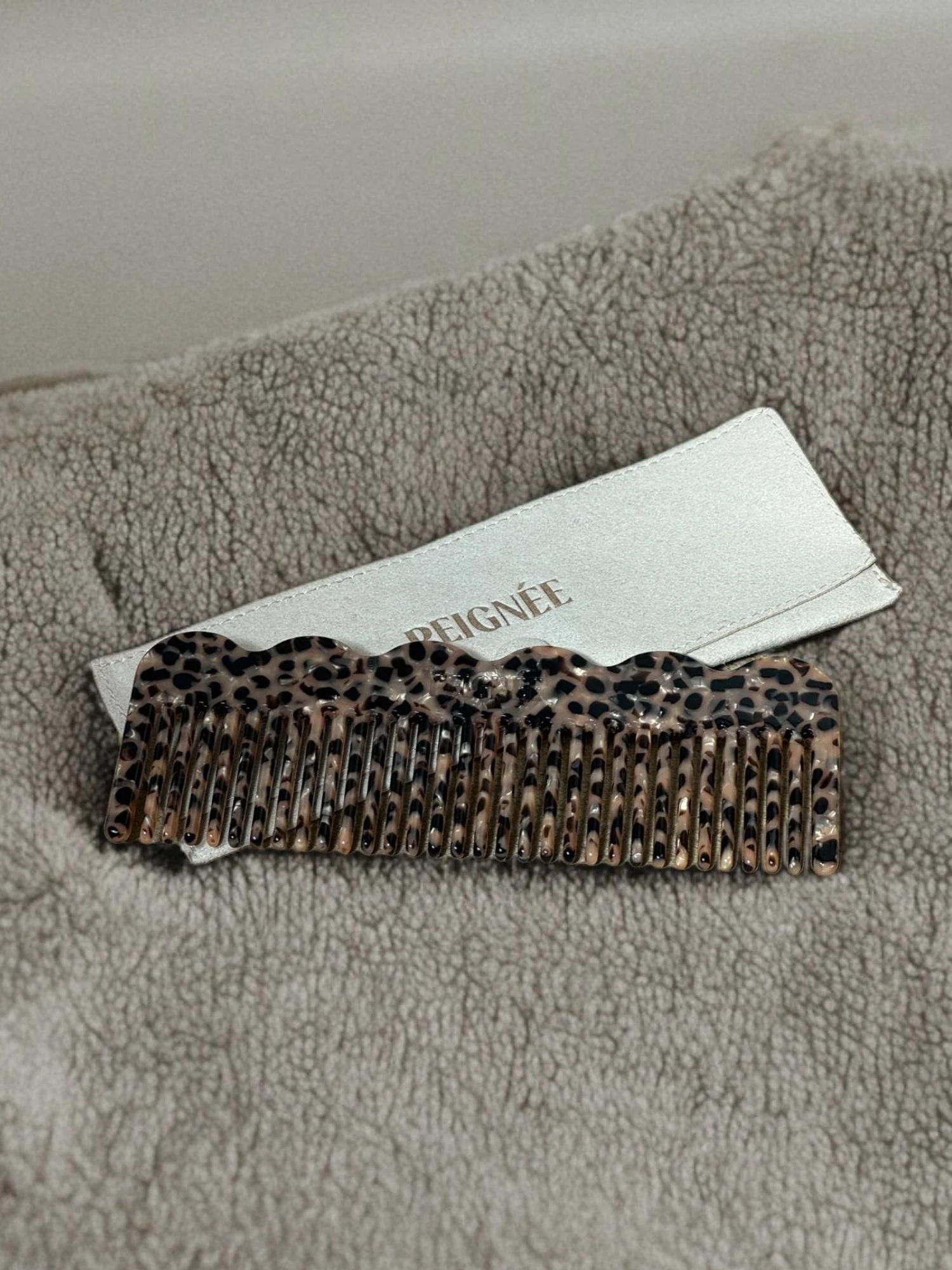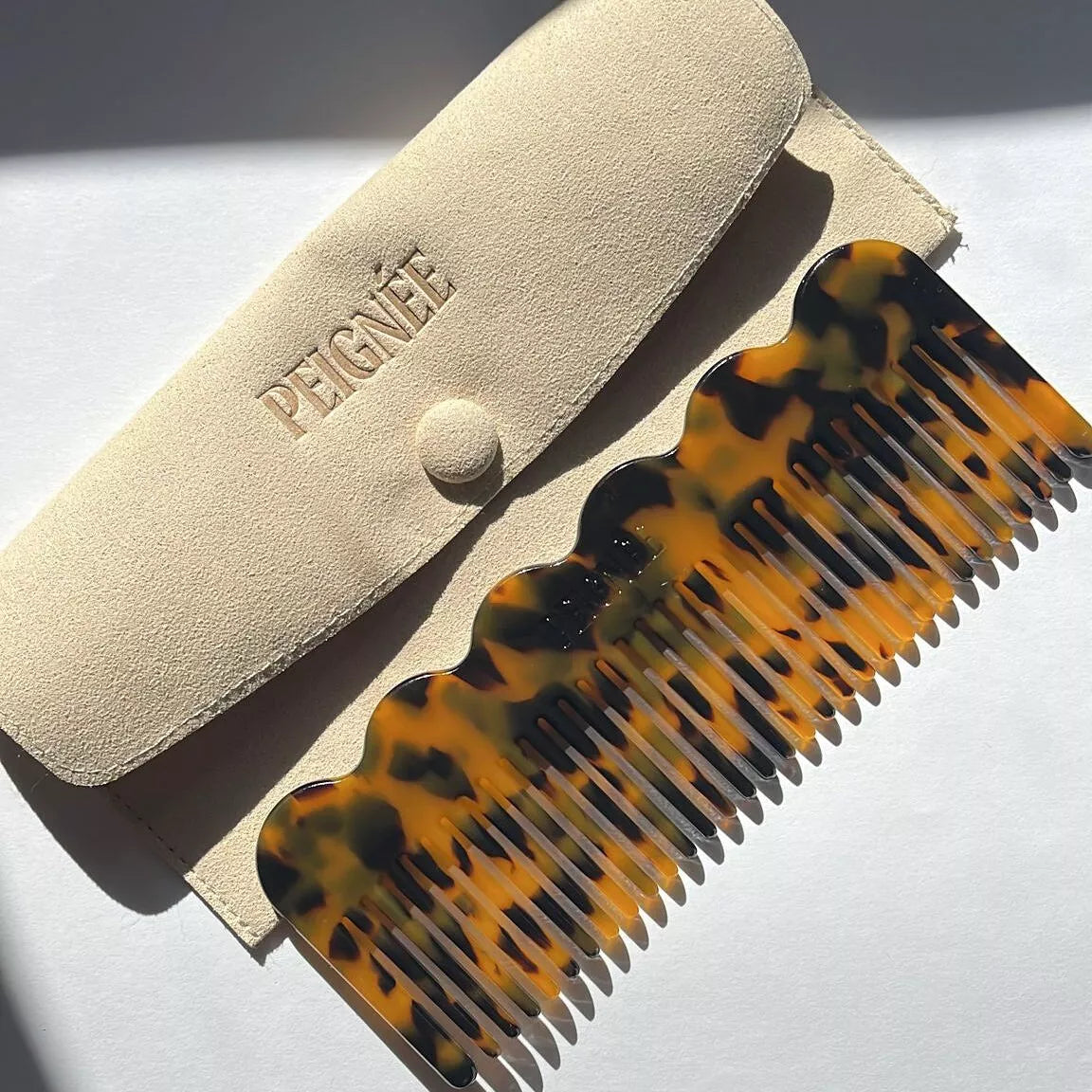 Découvrez notre peigne en acétate de la marque Peignée, un accessoire à la fois pratique et esthétique. Sa matière résistante glisse en douceur sur les cheveux, évitant ainsi les frisottis et la casse. Le design unique et ondulé de ce peigne lui confère un aspect raffiné, tandis que sa couleur nacrée s'accordera avec toutes les teintes de cheveux. Livré avec sa pochette de protection pour le transporter partout avec vous.
