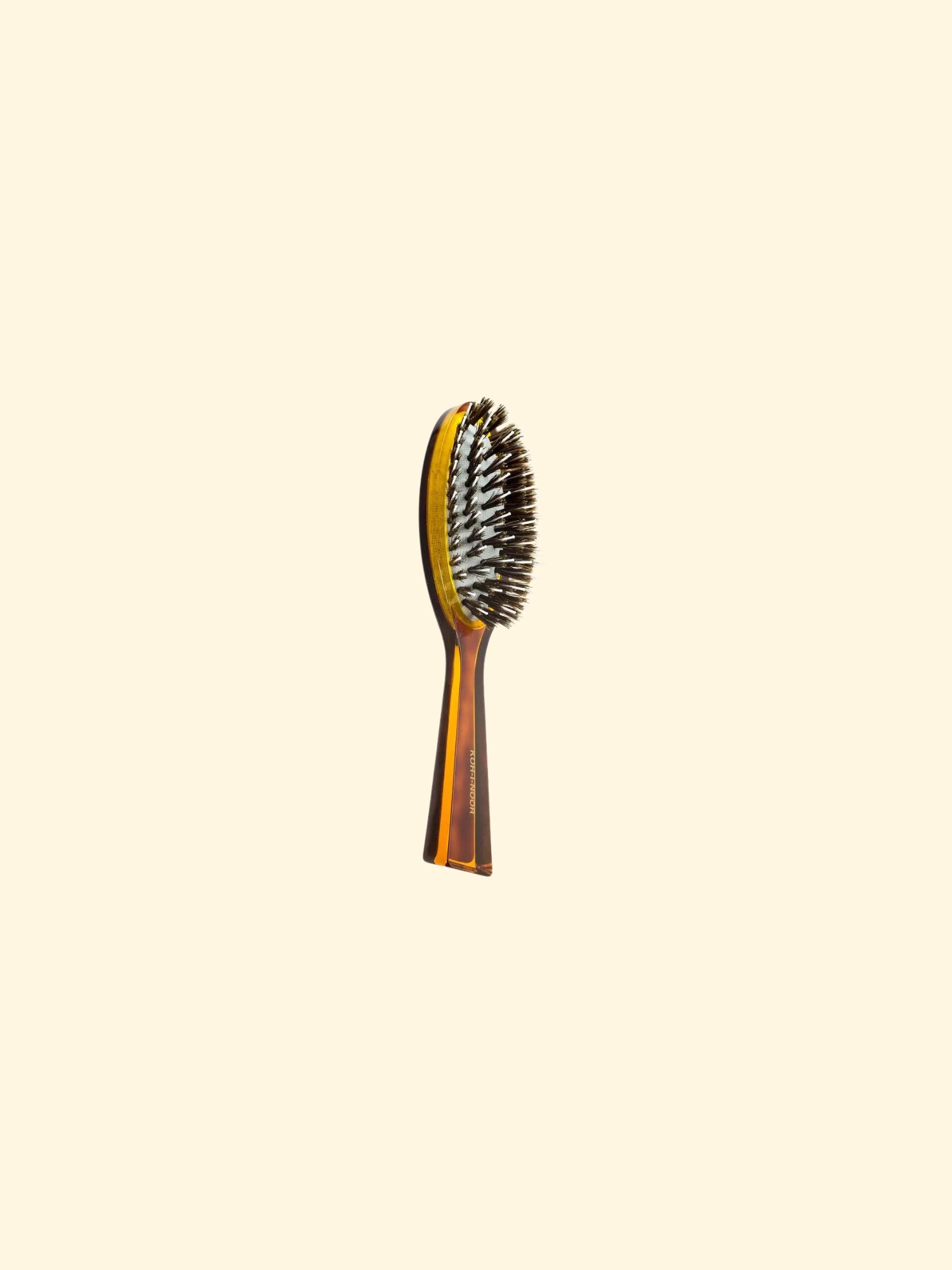 Cette brosse élégante est l'alliance parfaite de l'esthétique et de la fonctionnalité. Son manche en acétate, remarquable par sa brillance, sa transparence et sa douceur au toucher, s'inscrit dans un design épuré et intemporel.