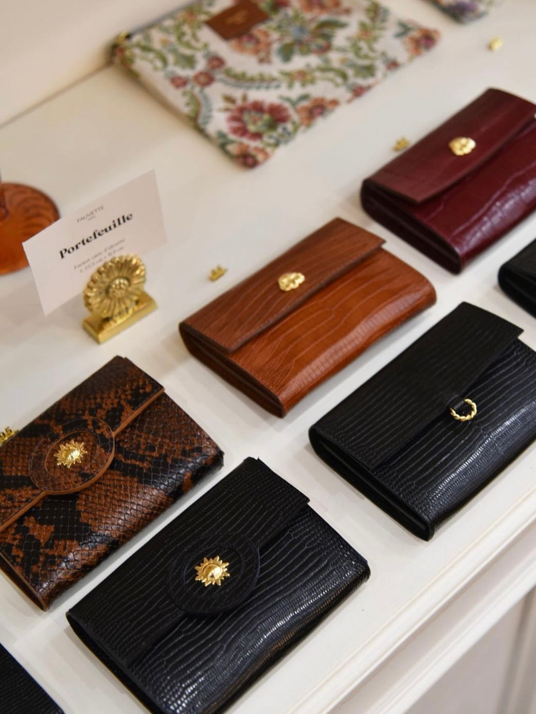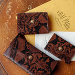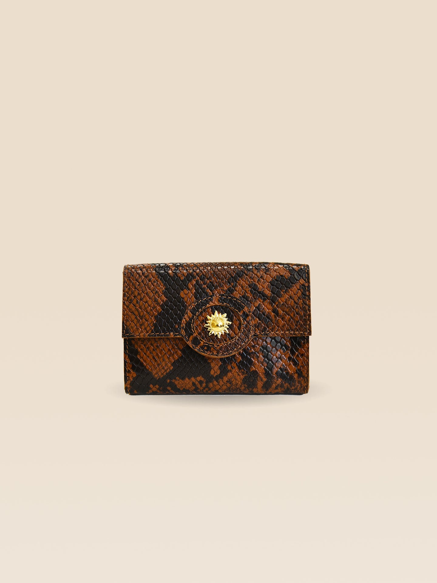 Portefeuille en cuir de vachette embossé python et soleil doré à l’or fin
