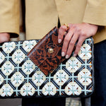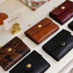 Vous aimiez le format carte d’identité du portefeuille Joséphine, nous l’avons rééditer pour vous en version Léna. Craquez pour son cuir embossé python et son soleil doré à l’or