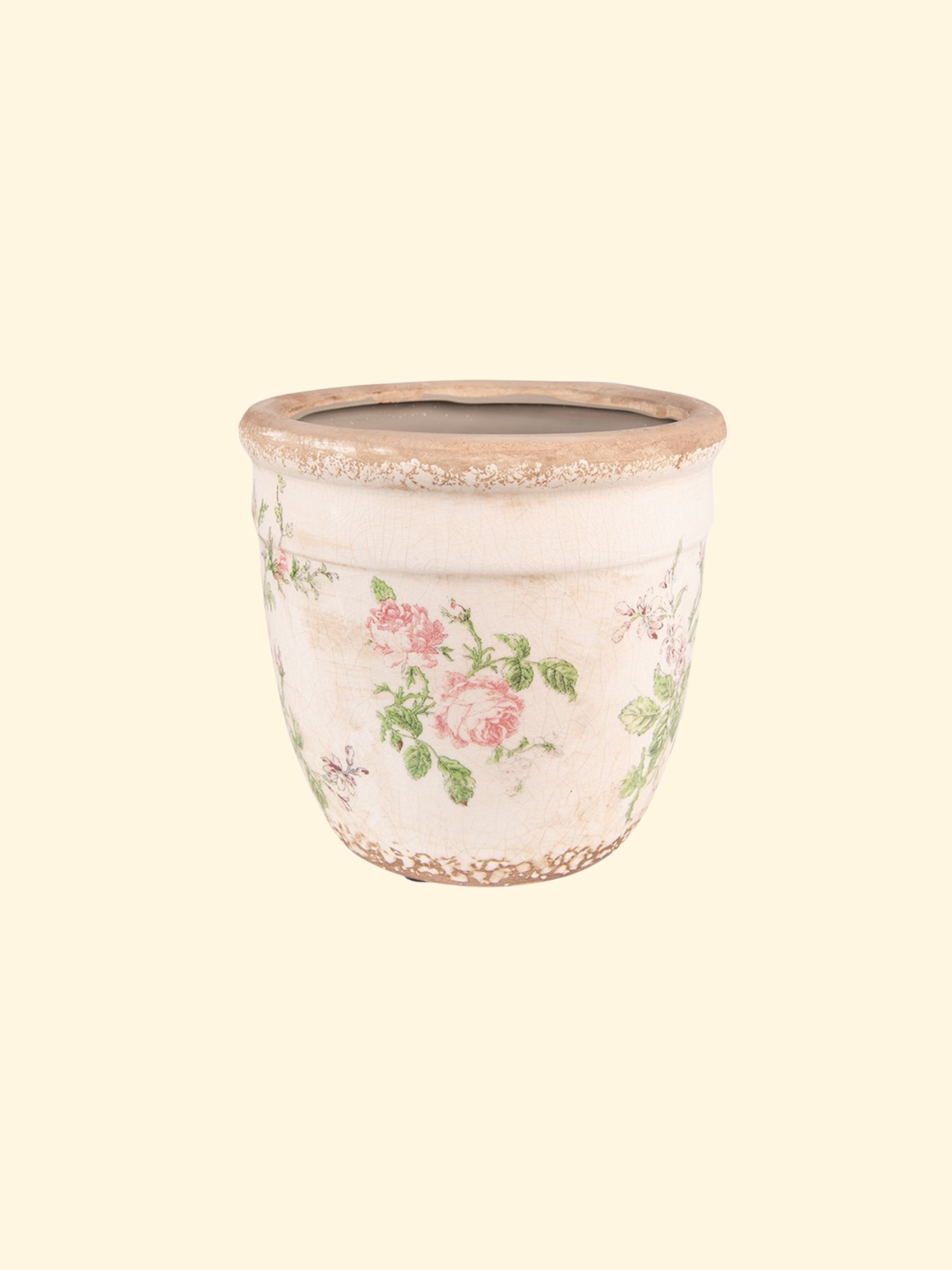 Pot de fleurs Ø 18x17 cm Rose Beige Céramique Fleurs