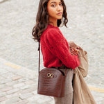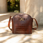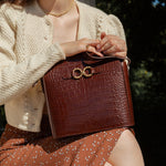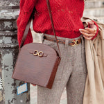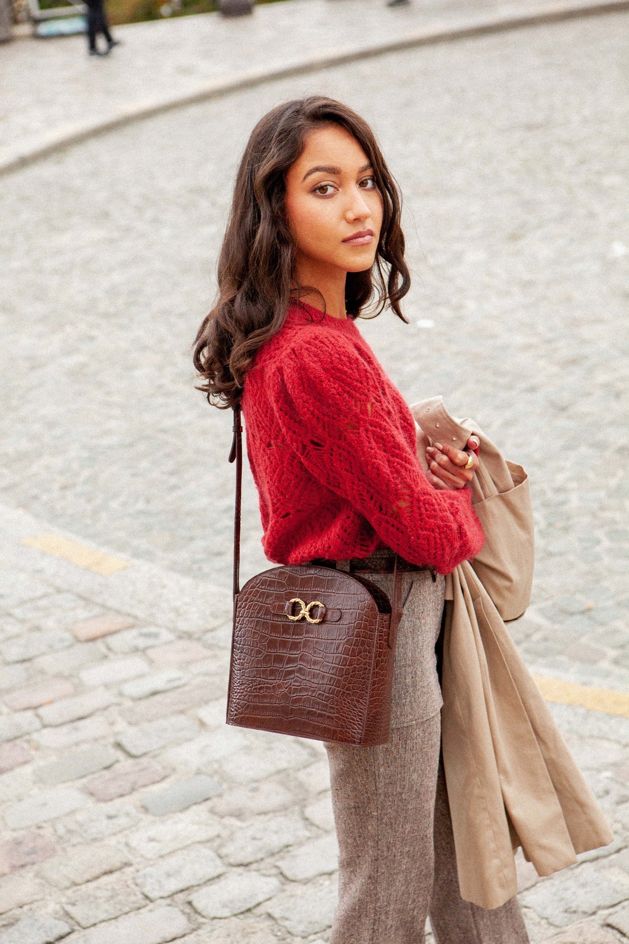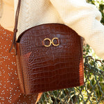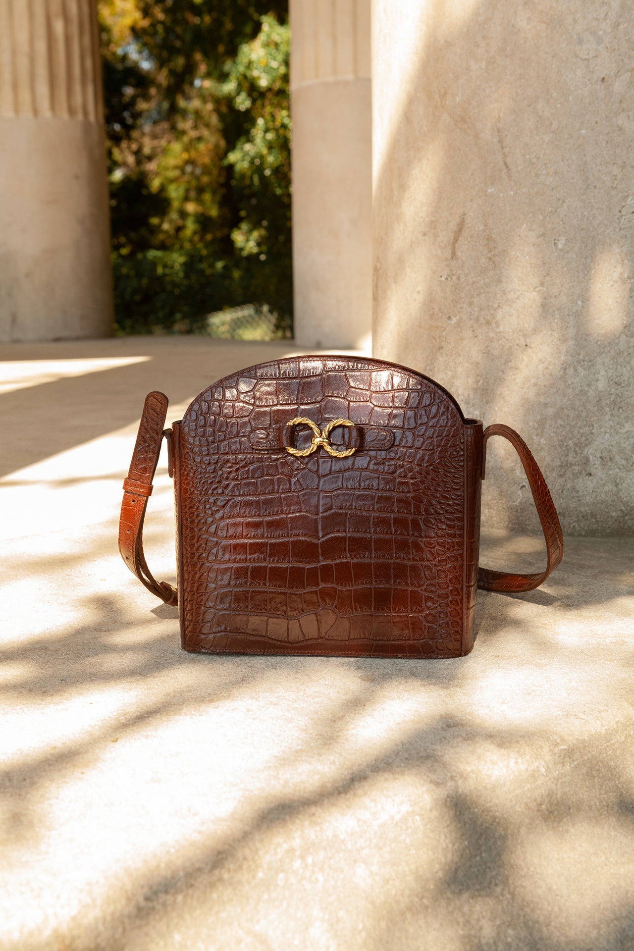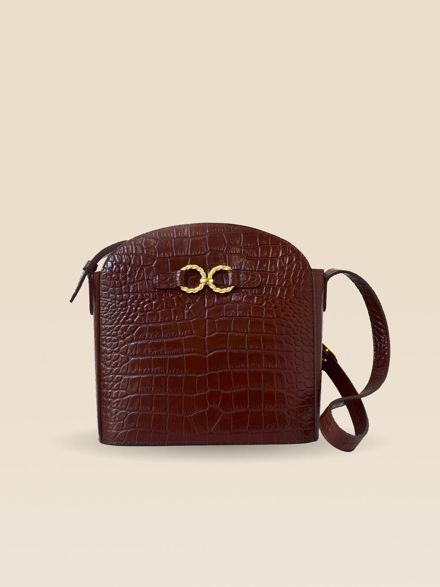 Sac en cuir de vachette embossé croco à tannage minéral et anneaux torsadés dorés à l’or