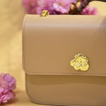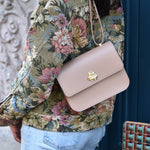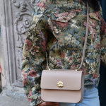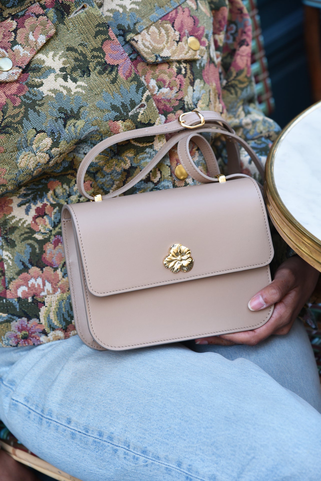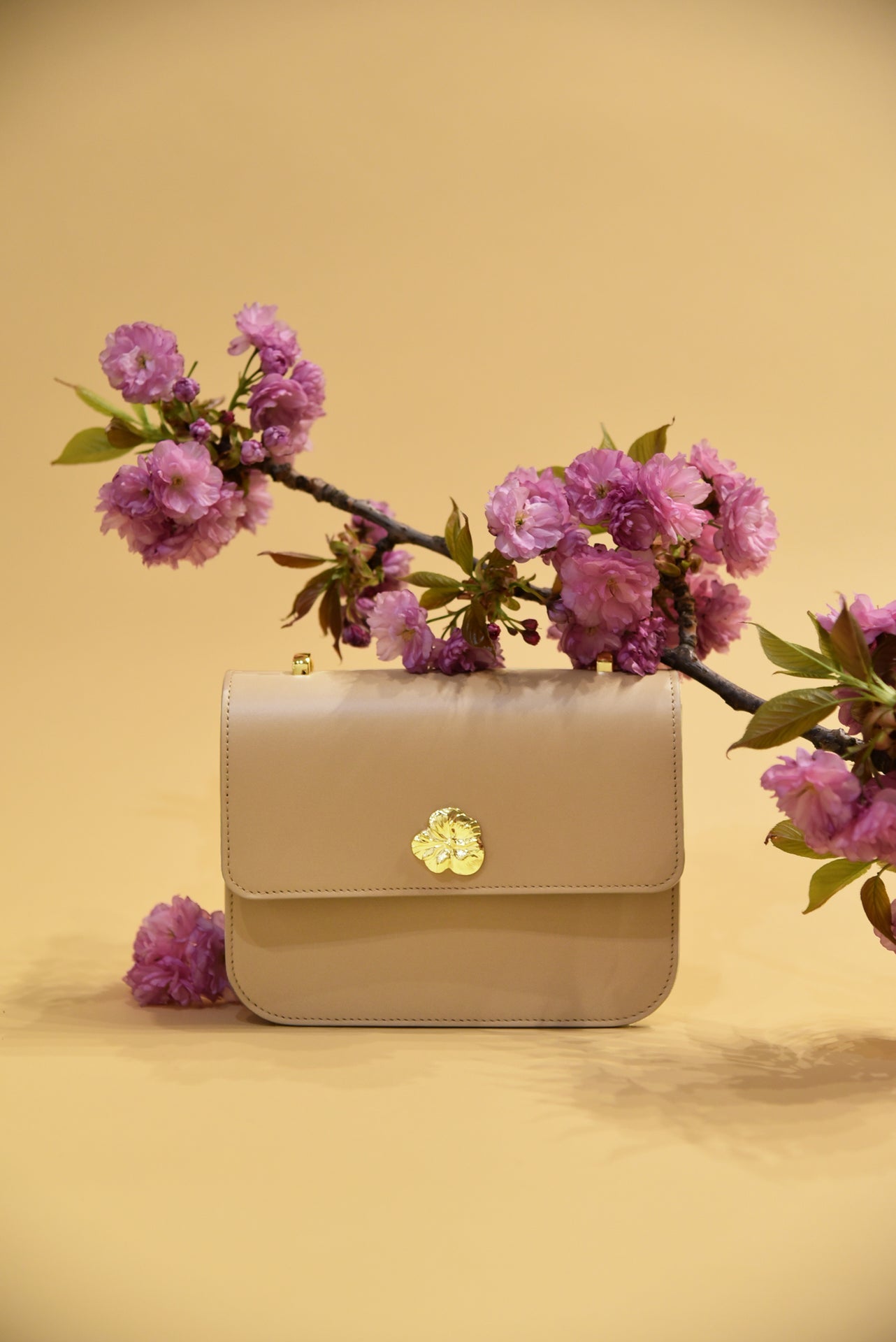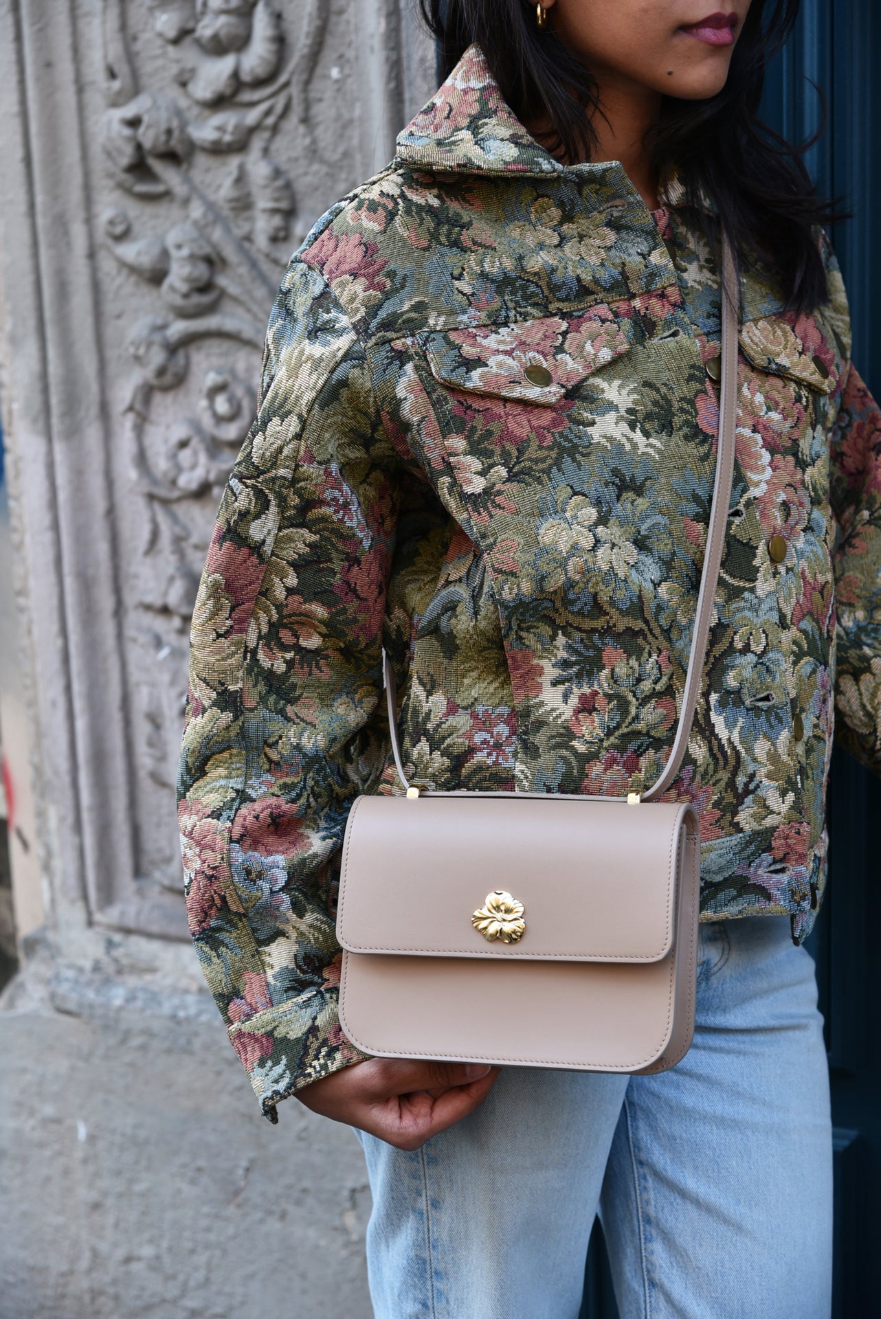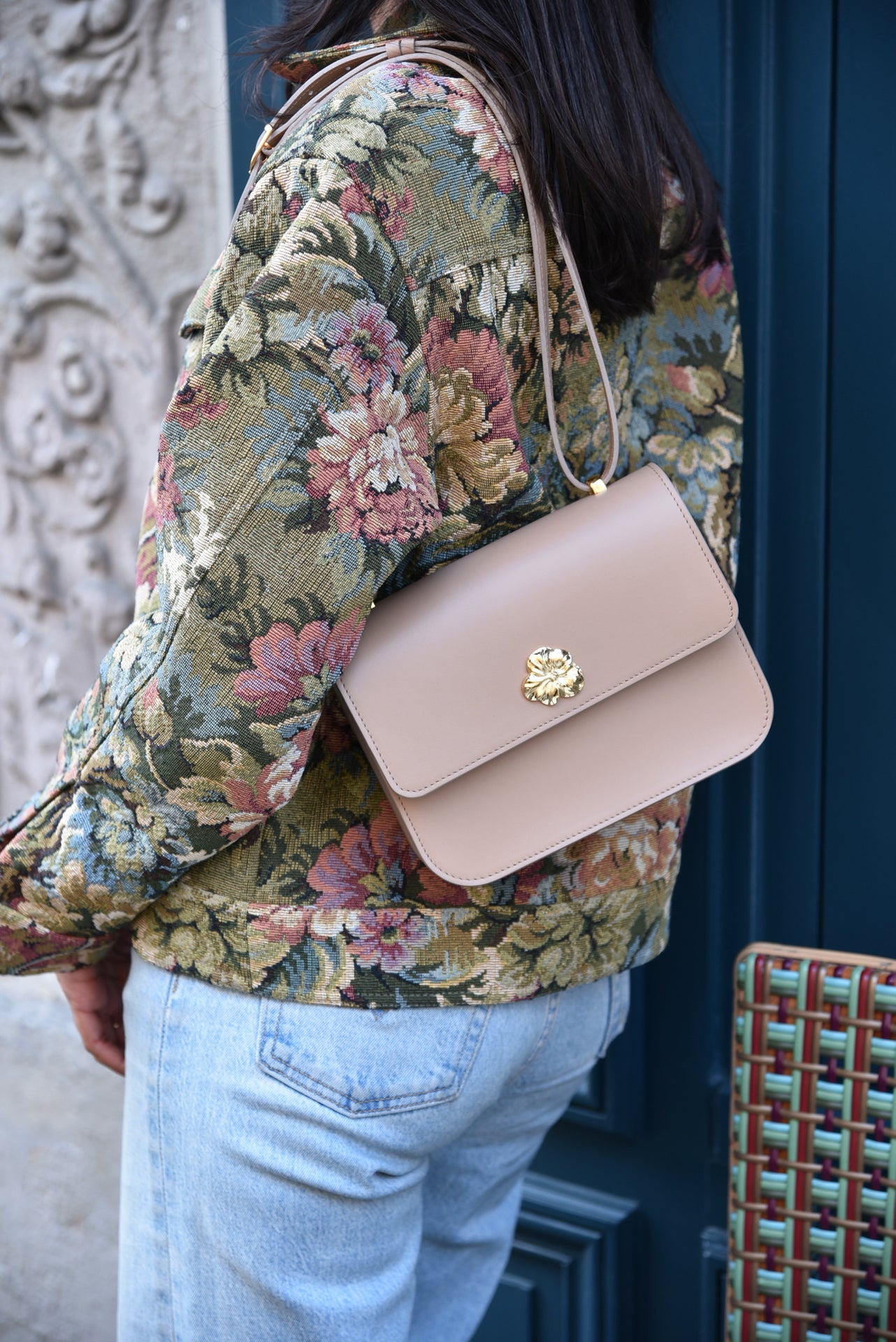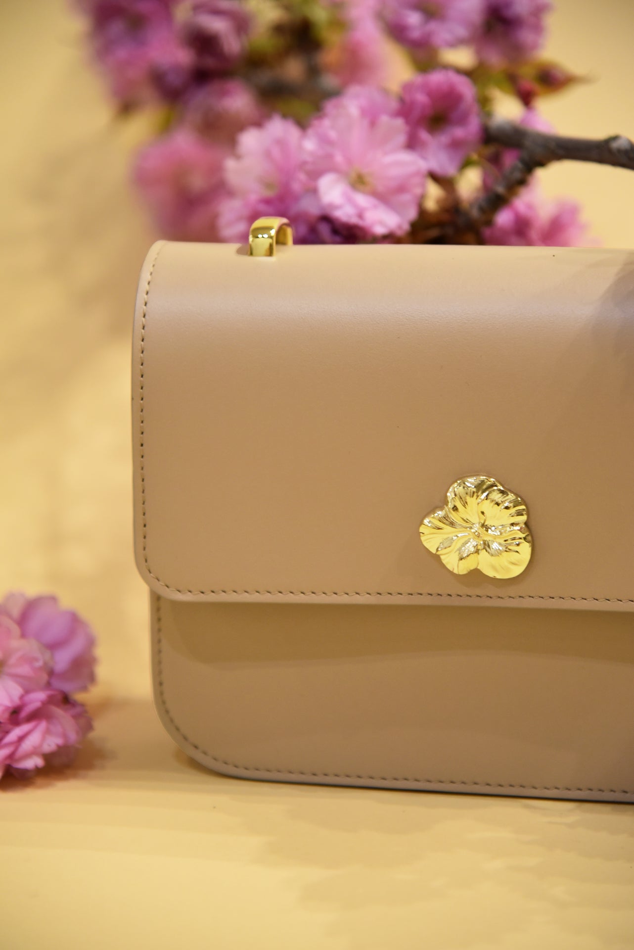 Sac en cuir de vachette et fleur aimantée dorée à l’or