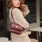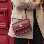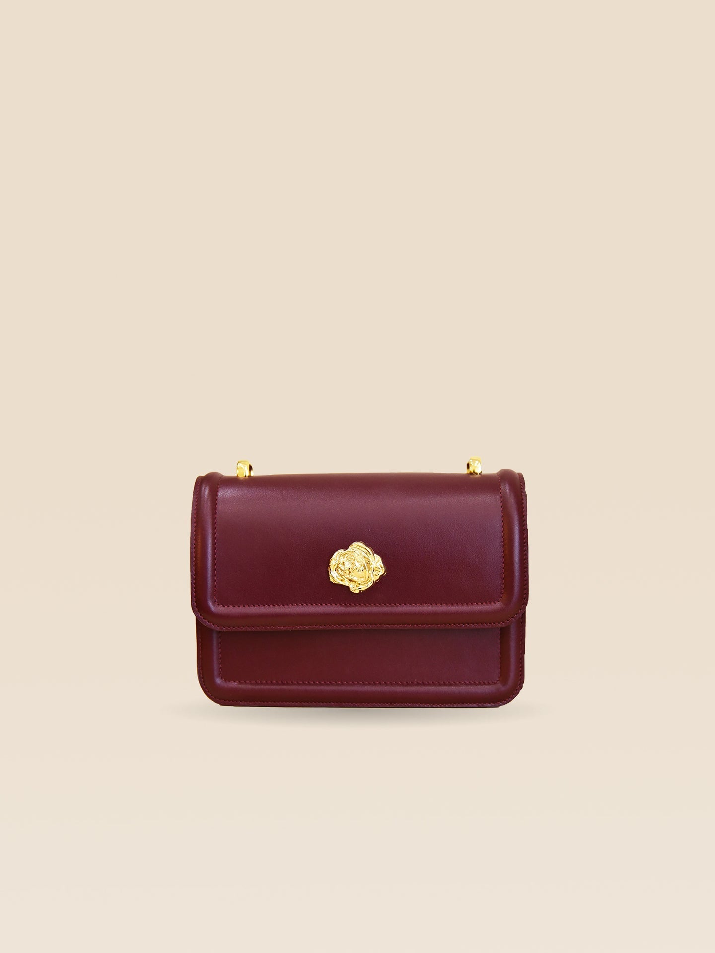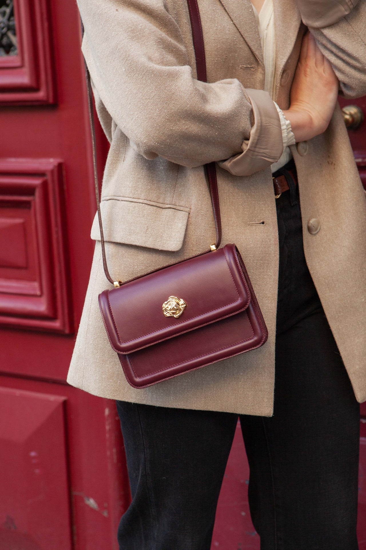 Sac en cuir de vachette lisse bordeaux et rose aimantée dorée à l’or