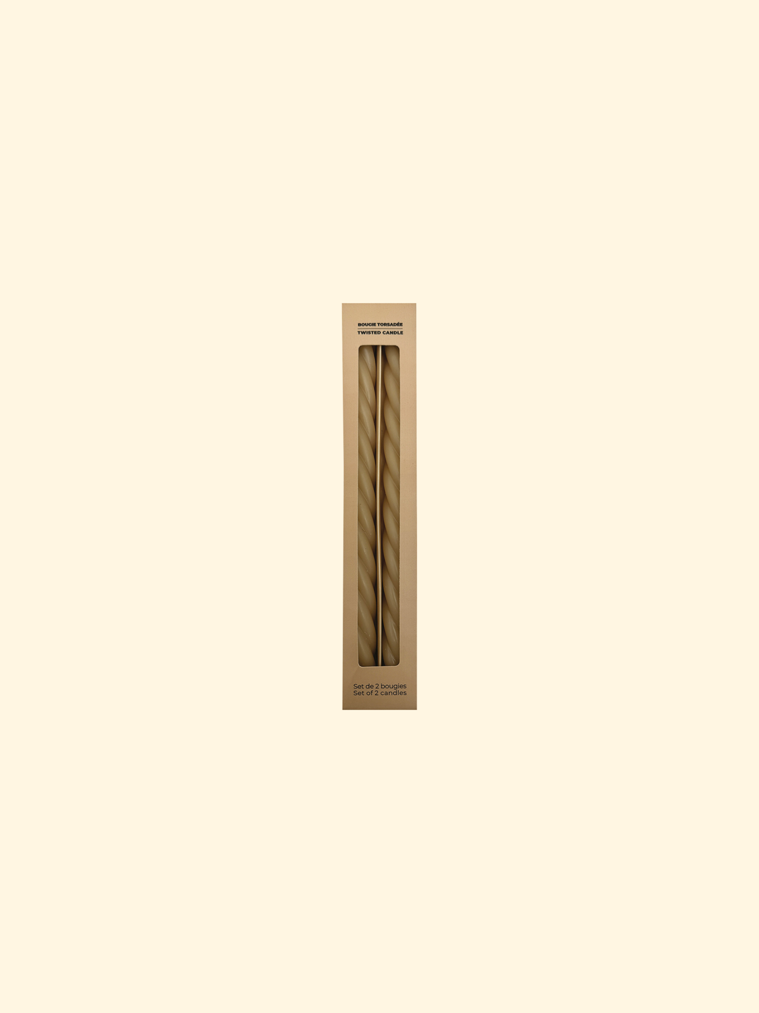 Set de 2 bougies longues torsadées beige