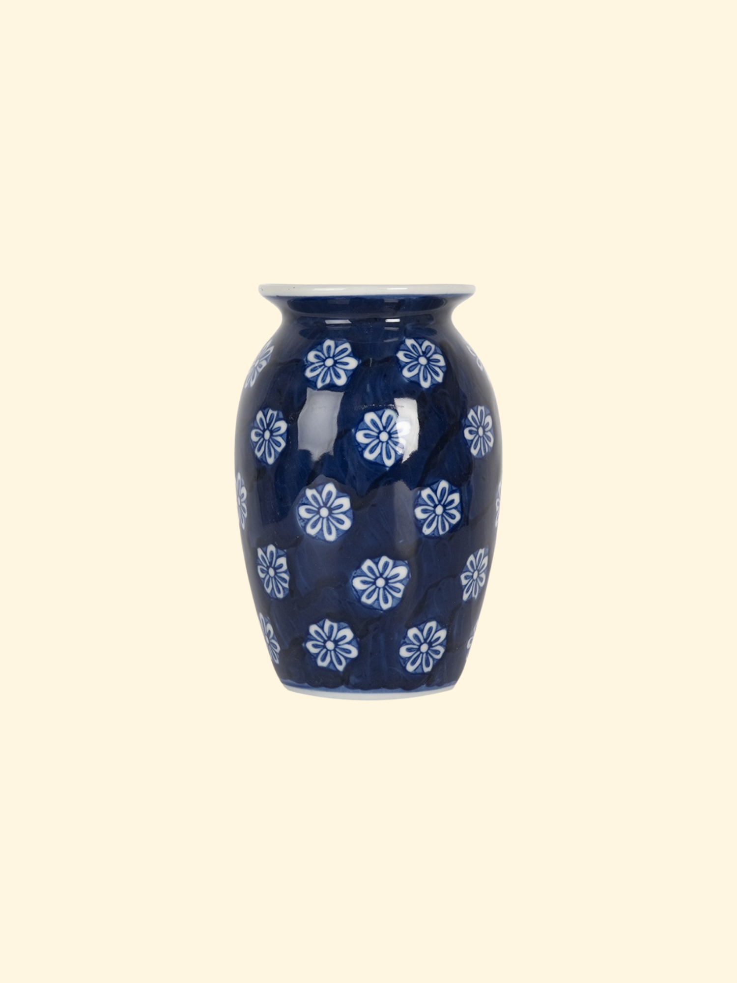Vase Ø 10x15 cm Bleu Blanc Céramique Fleurs