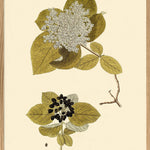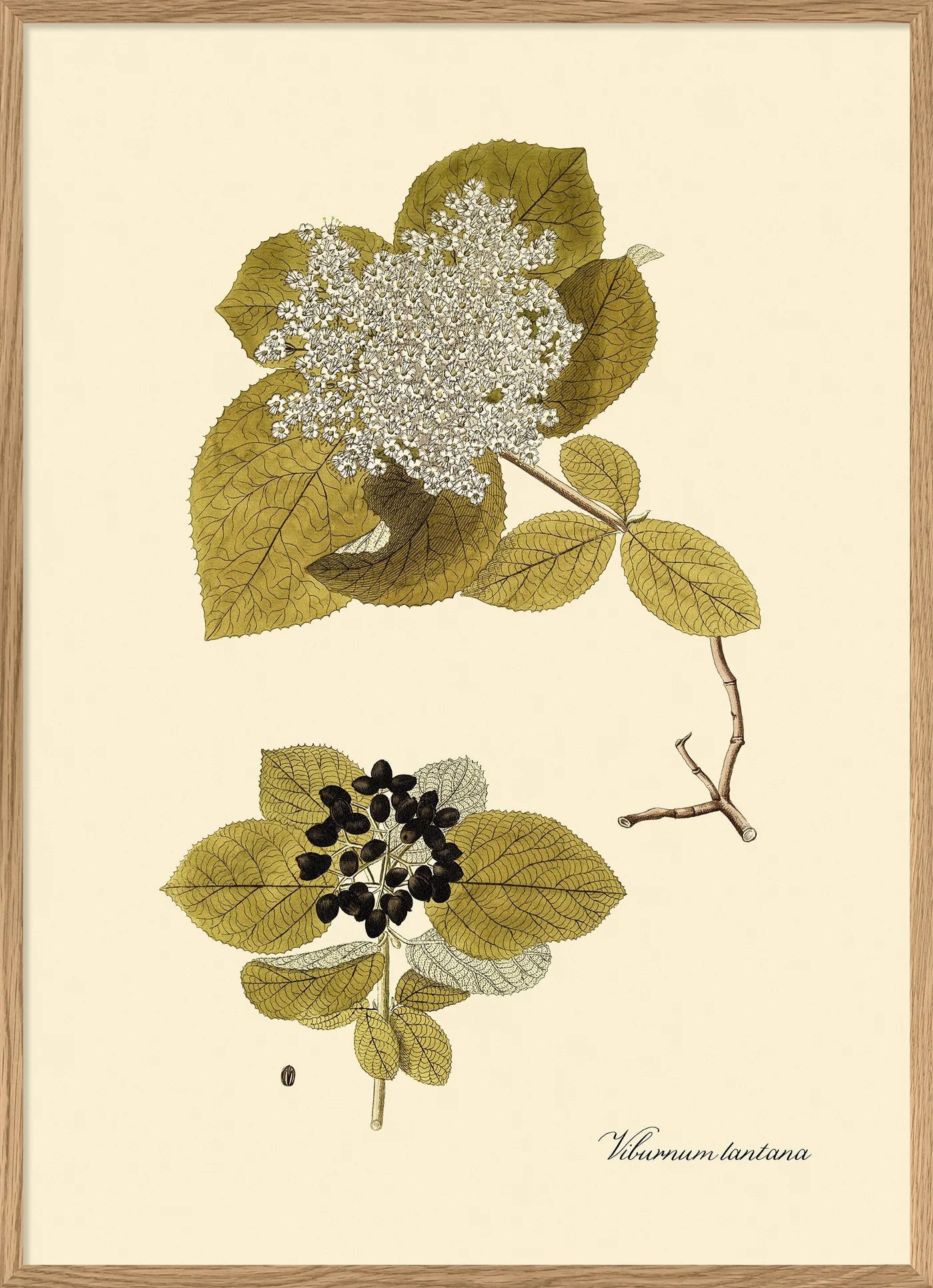 Cette affiche encadrée représente une illustration botanique vintage de la viorne lantane, également connue sous le nom de Viburnum lantana.