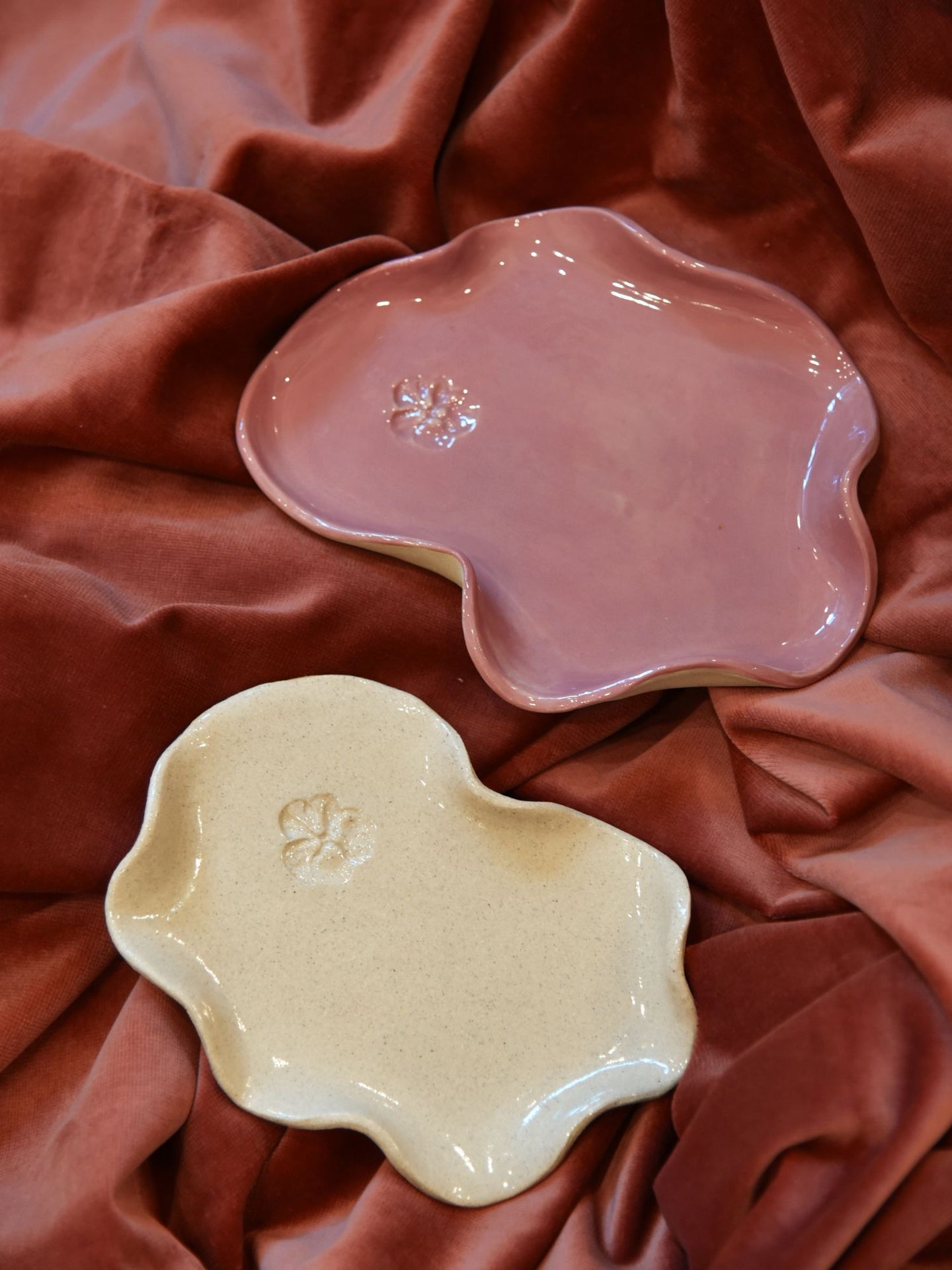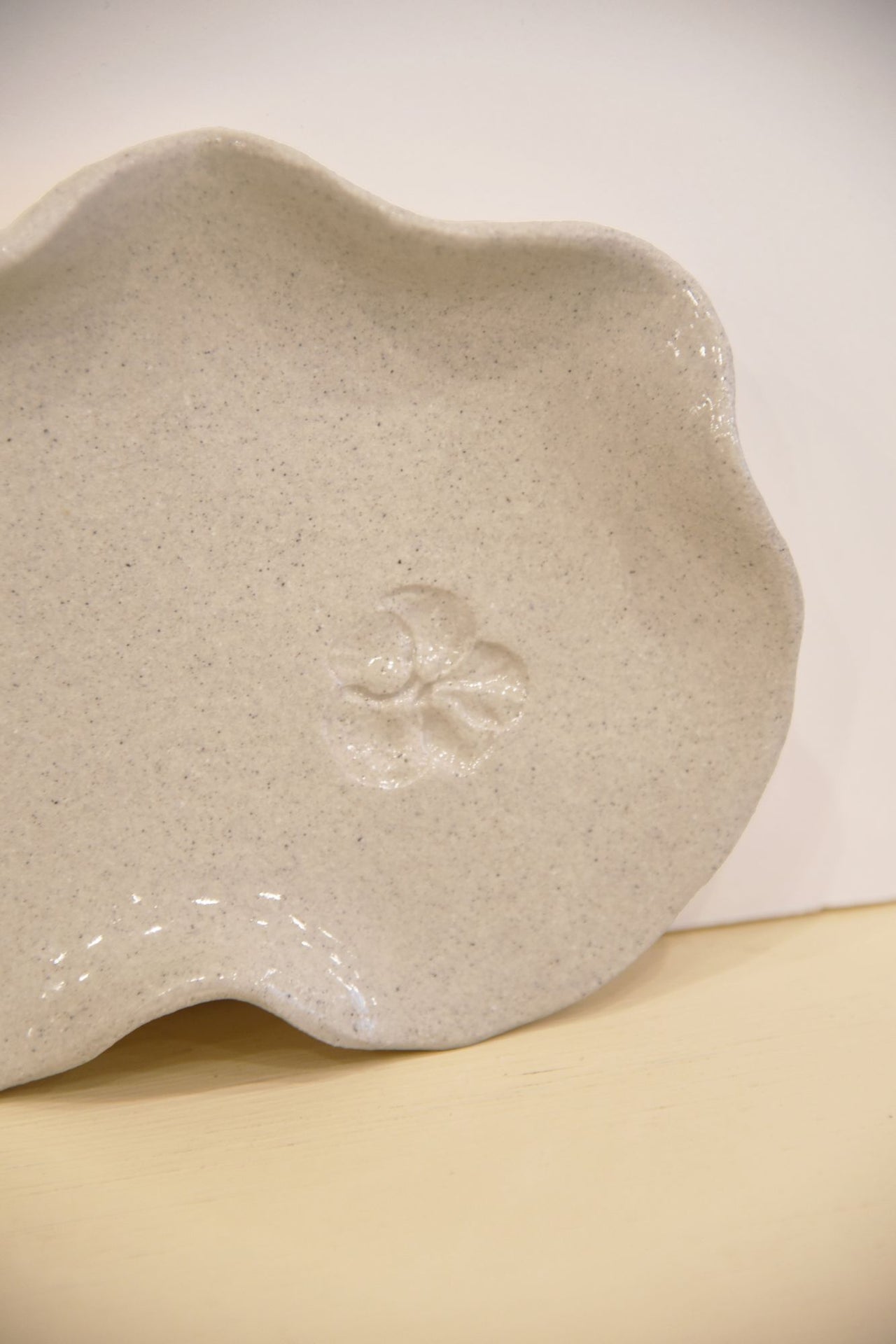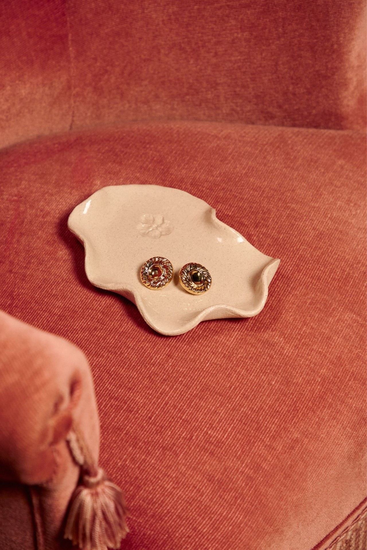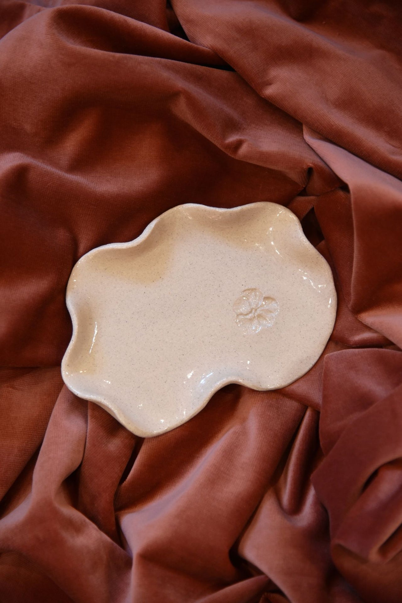 Une sublime rencontre entre la fleur de notre sac Adèle et le grès de Maison Mic Mac. Vous pouvez y ranger vos plus jolis bijoux ou vous en servir de petit plat pour un très bel effet auprès de vos invités.
